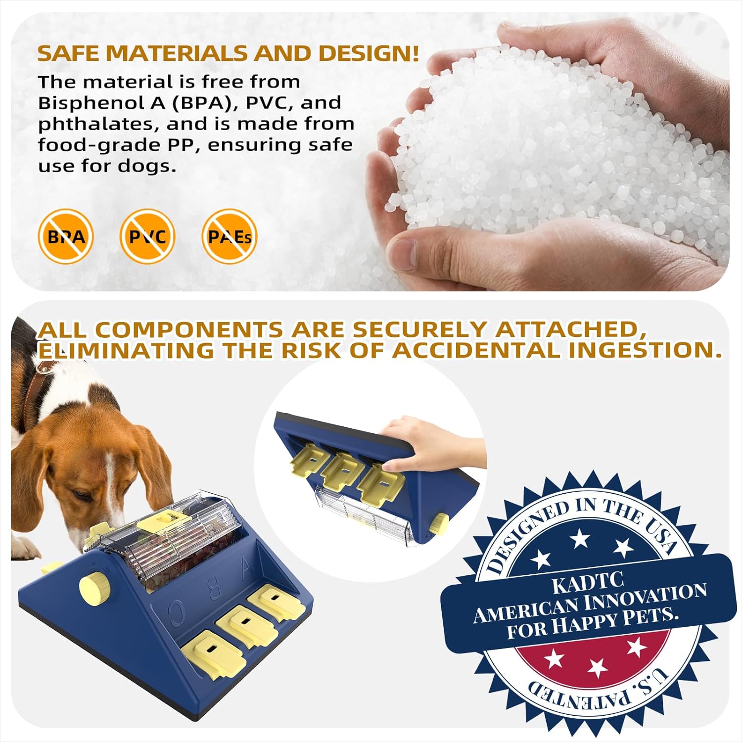 [Innovative U.S. Design with U.S. Brand and U.S. Patent] KADTC, an American brand, proudly introduces this innovative dog puzzle toy, designed and patented in the USA. Featuring a unique centralized food dispensing system, this toy not only provides engaging play but also helps your dog develop a slow-eating habit, improving digestive health. It holds up to 14 ounces of food and combines Level 1 and Level 2 difficulty gameplay in one toy, offering a customizable challenge for your dog. Perfect for stimulating your dog’s mind, this toy is a thoughtful gift for birthdays, holidays, and special occasions.
