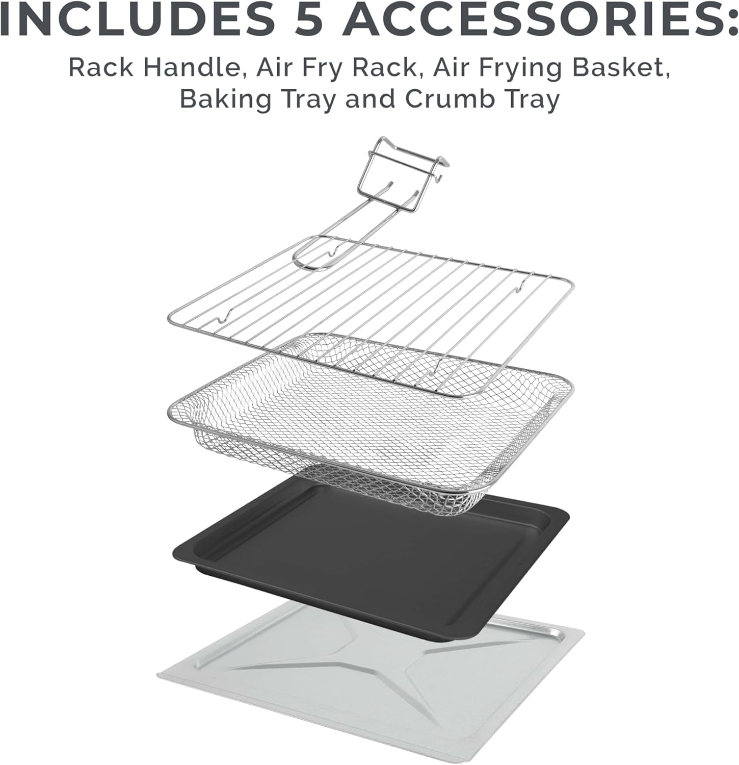 Customers find the air fryer oven cooks food well and is easy to use, with one customer noting it makes amazing grilled salmon. The appliance receives positive feedback for its taste, with one customer mentioning perfectly seared medium-rare steak with grill marks. The functionality and value for money receive mixed reviews – while some say it works well and is worth the price, others report it stops working after less than 7 months and consider it a waste of money. Cleaning experiences are mixed, with some finding it easy while others find it difficult, and opinions on the included accessories are divided between those who appreciate the many options and those who received none.