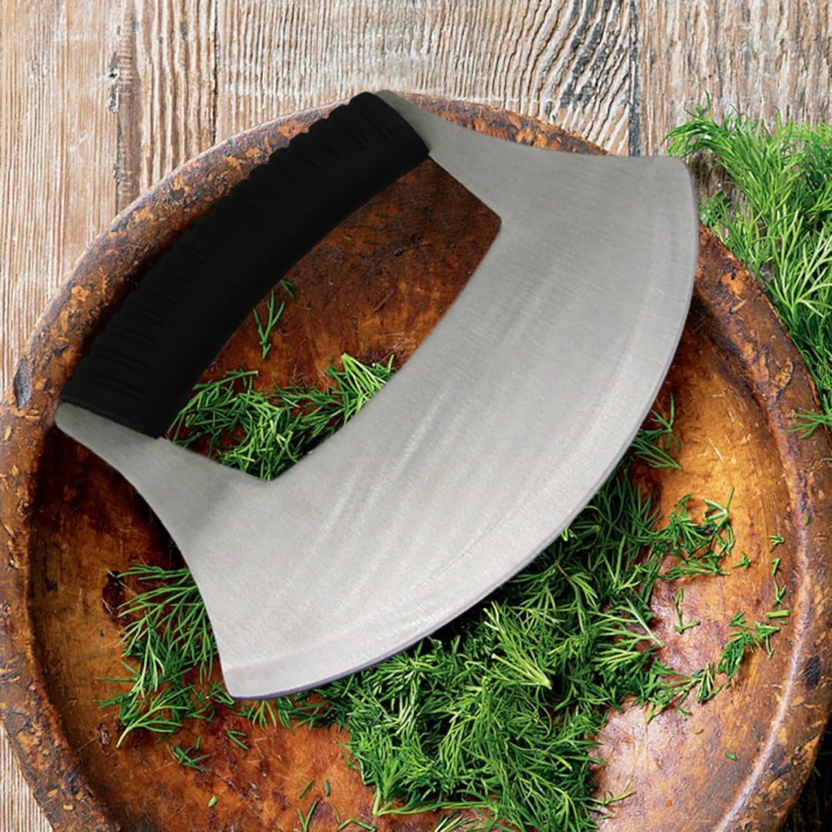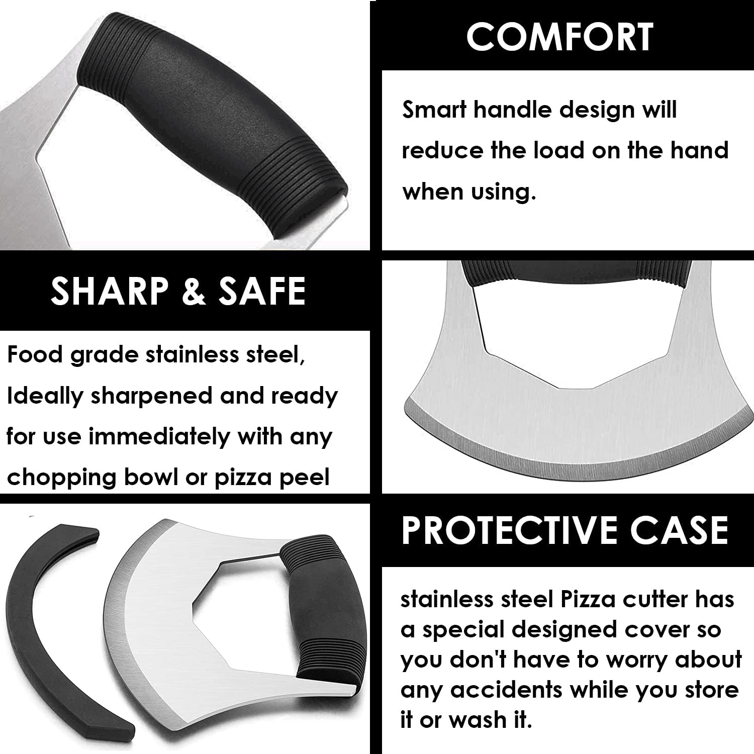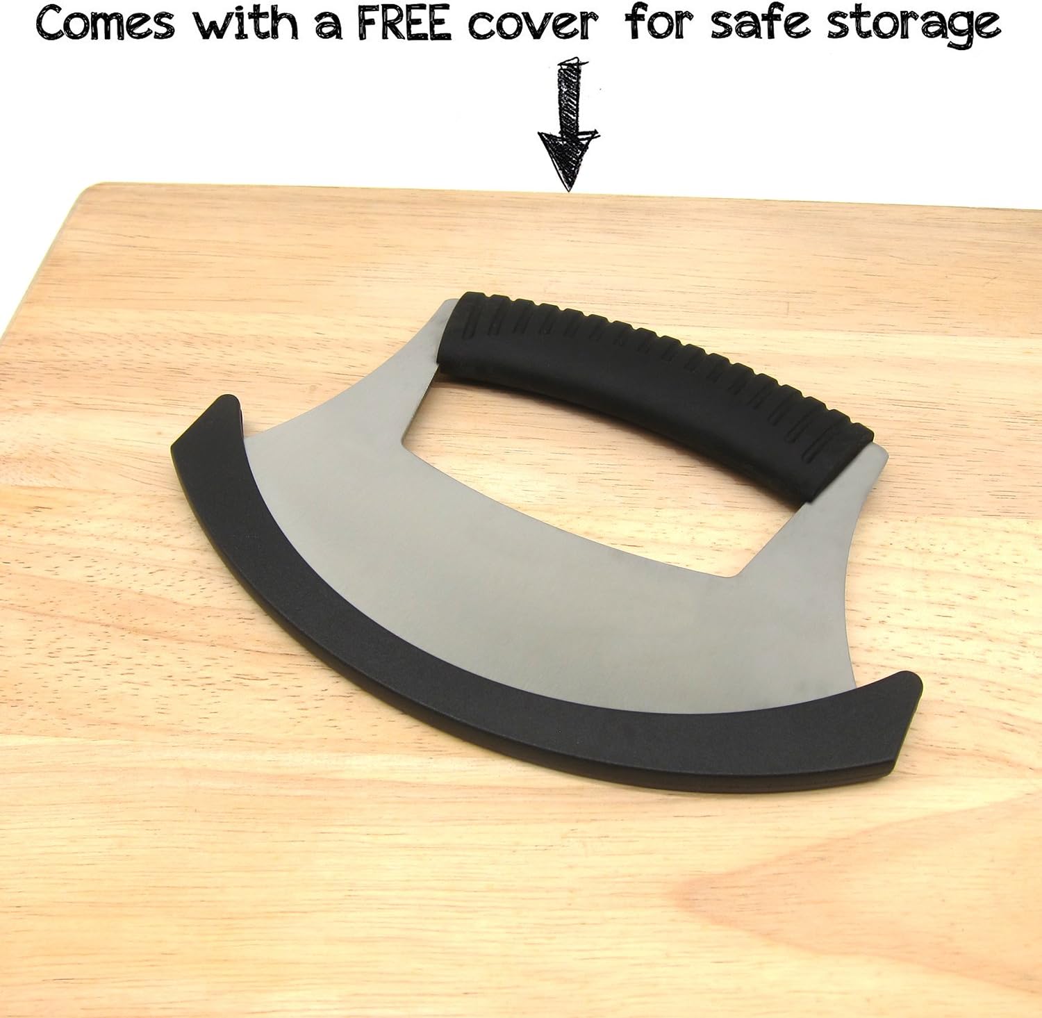 KAYCROWN Mezzaluna Knife Pizza Cutter – Stainless Steel Salad Vegetable Chopper with Protective Cover Sharp Rocker Slicer