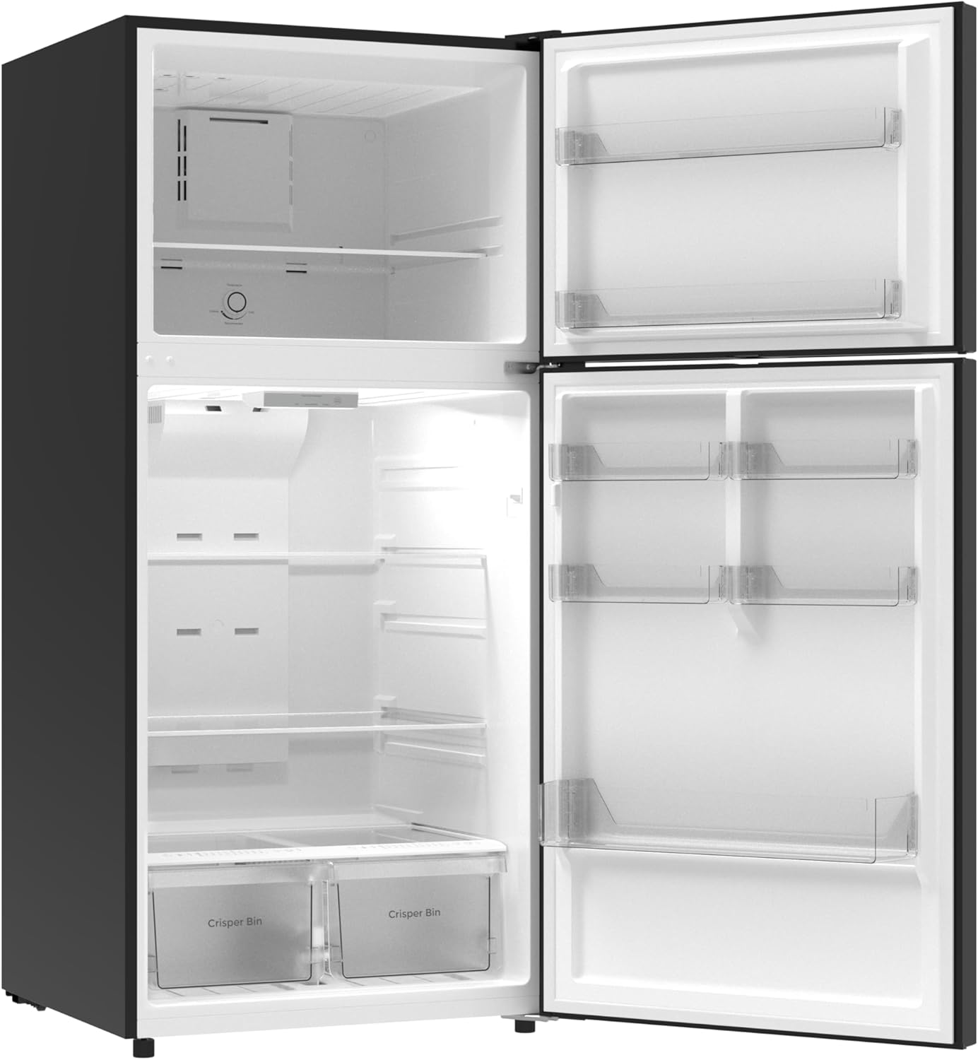 Indulge in convenience, style, and efficiency with our revolutionary black refrigerator and freezer combo. Crafted with 7 clear door bins, including a spacious gallon-sized bin to organize your favorite beverages or condiments and 2 clear freezer bins optimize space for smaller items. The humidity-controlled environment ensures your fruits and veggies stay crisp. The garage-ready 18 cu ft refrigerator is a convenient place to store extra beverages and food, designed for external temperatures 45°F to 110°F . The Inverter Compressor intelligently maintains a consistent temperature to keep food fresh. It’s also quieter, more energy efficient and operates with less wear and tear than conventional compressors. Measuring 29.72″ W x 30.12″ D x 66.14″ H, the sleek, modern design instantly elevates any kitchen aesthetic while maximizing shelf space and facilitating easy cleanup in both the freezer and refrigerator compartments. Bright LED lighting ensures nothing is lost in dark corners. The adjustable tempered glass shelves accommodate oversized items such as pizza boxes, party trays and sheet cakes with ease. Plus, with ENERGY STAR® certification you can enjoy significant energy and dollar savings without compromising on features. Upgrade your kitchen experience today.