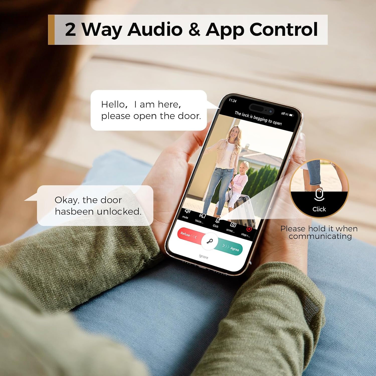 【Remote Access & 2-Way Audio】Tuya app alerts + live video feed when doorbell is pressed. Talk to visitors, unlock remotely, and check access logs—ideal for deliveries or Airbnb hosts.