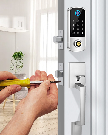 [High Quality Deadbolt Lock] Smart deadbolt lock withstands temperatures from -4 °F to 140 °F, proven by strict tests. Powered by 4 AA batteries (not included). It also features shock resistance, made of sturdy Zinc Alloy panel, and long battery life which can last over a year.