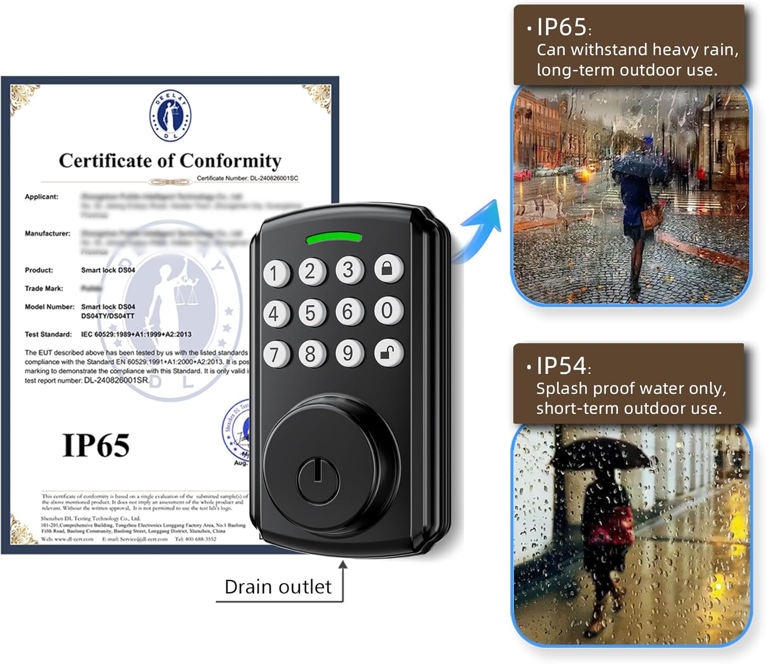 【IP65 waterproof】 Higher protection level than IP54, better lock protection, and increased service life.