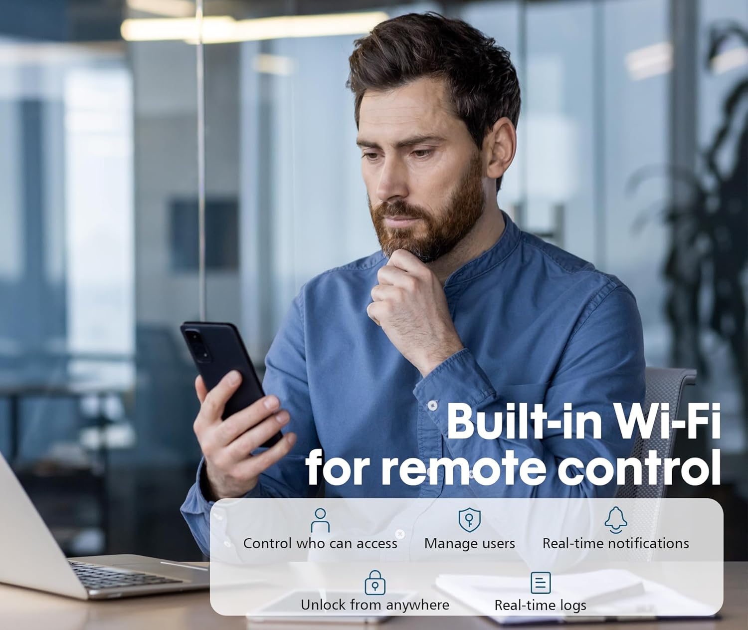 【WIFI brings greater security】 No bridge required, control your doors from anywhere using the app. Features include access management, real-time notifications, and detailed event history;