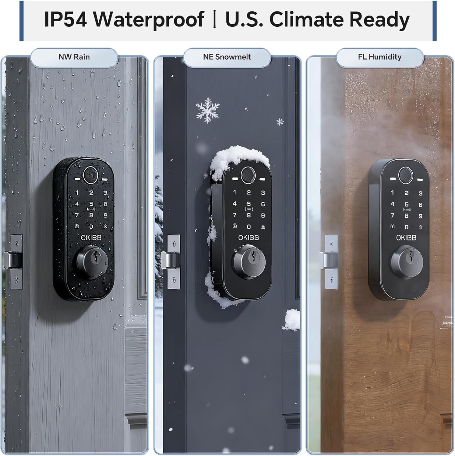 IP54 Weatherproof + U.S. Climate Ready: Made with scratch-resistant zinc alloy, this front door lock boasts an IP54 dustproof and waterproof rating—suitable for garage or porch use. It works stably in NW rains, NE snowmelt, and FL humidity, and its anti-pick cylinder makes it ideal for apartment exteriors, single-family home front doors, and garages