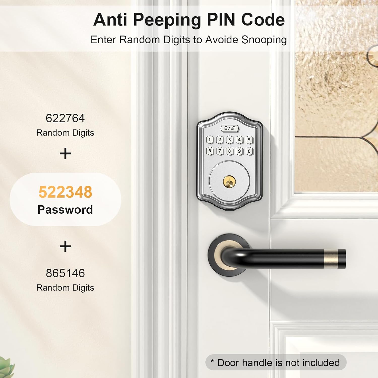 Anti-Peeping Password & Anti-Lock: Adding random numbers before or after the correct password can also unlock the door to prevent the password from prying eyes. Anti lock function set on the backside lock, so that you can enjoy your own private space without being disturbed by others.