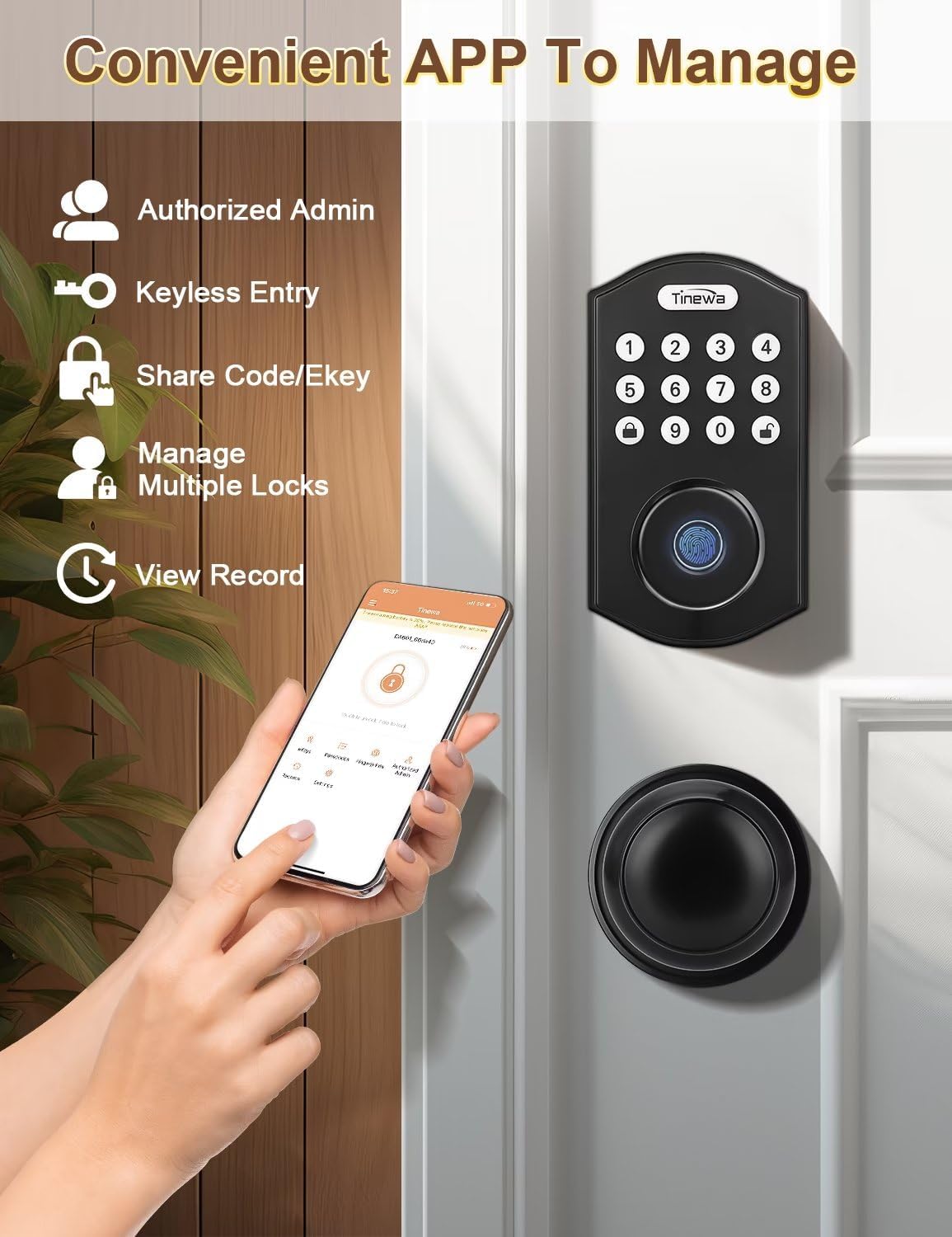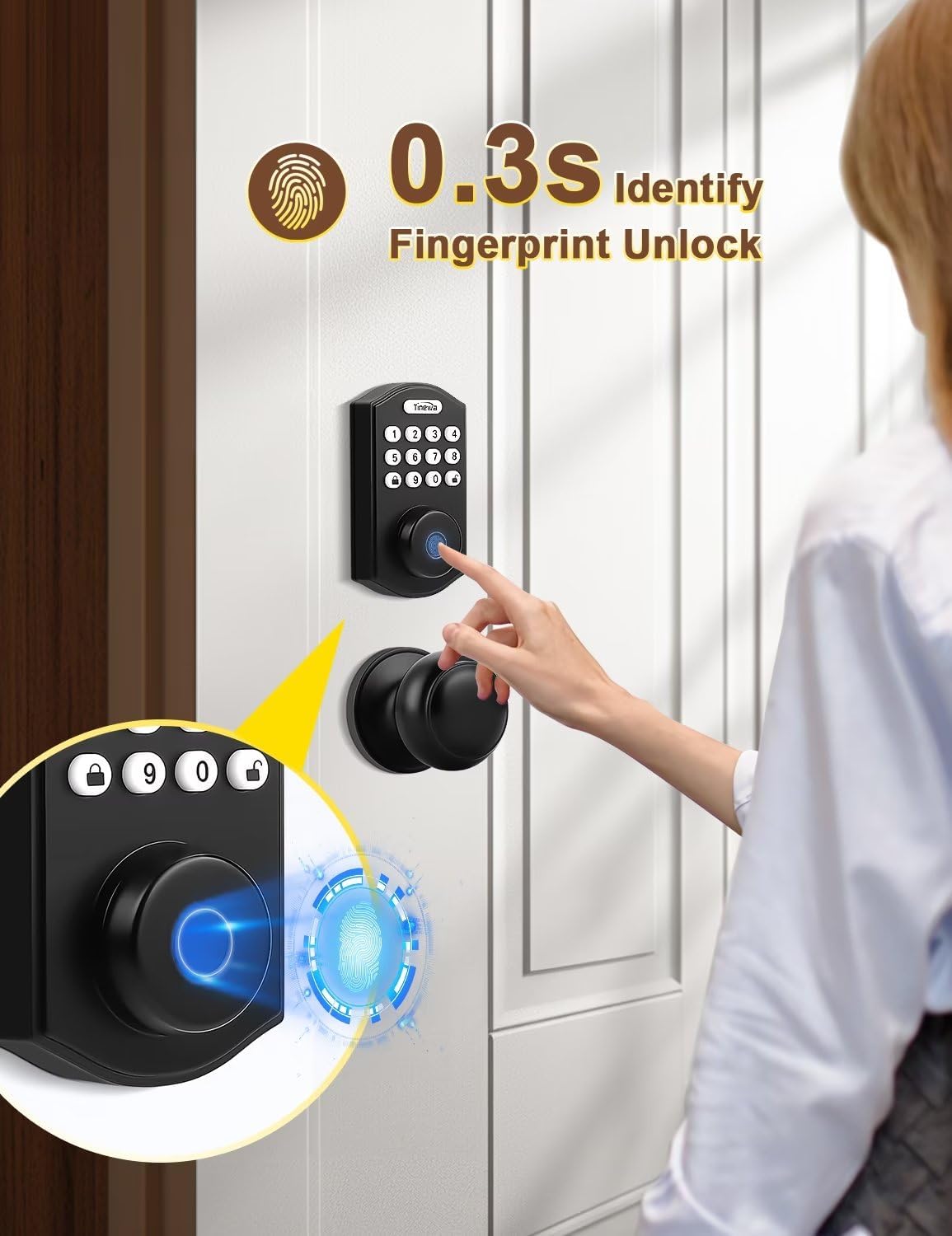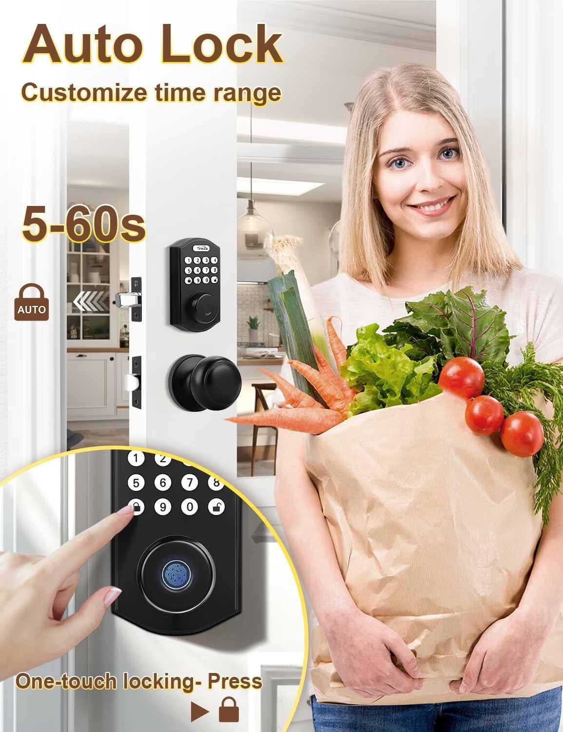 Smart Door Knob with App Control, Biometric Smart Lock for Bedroom Door