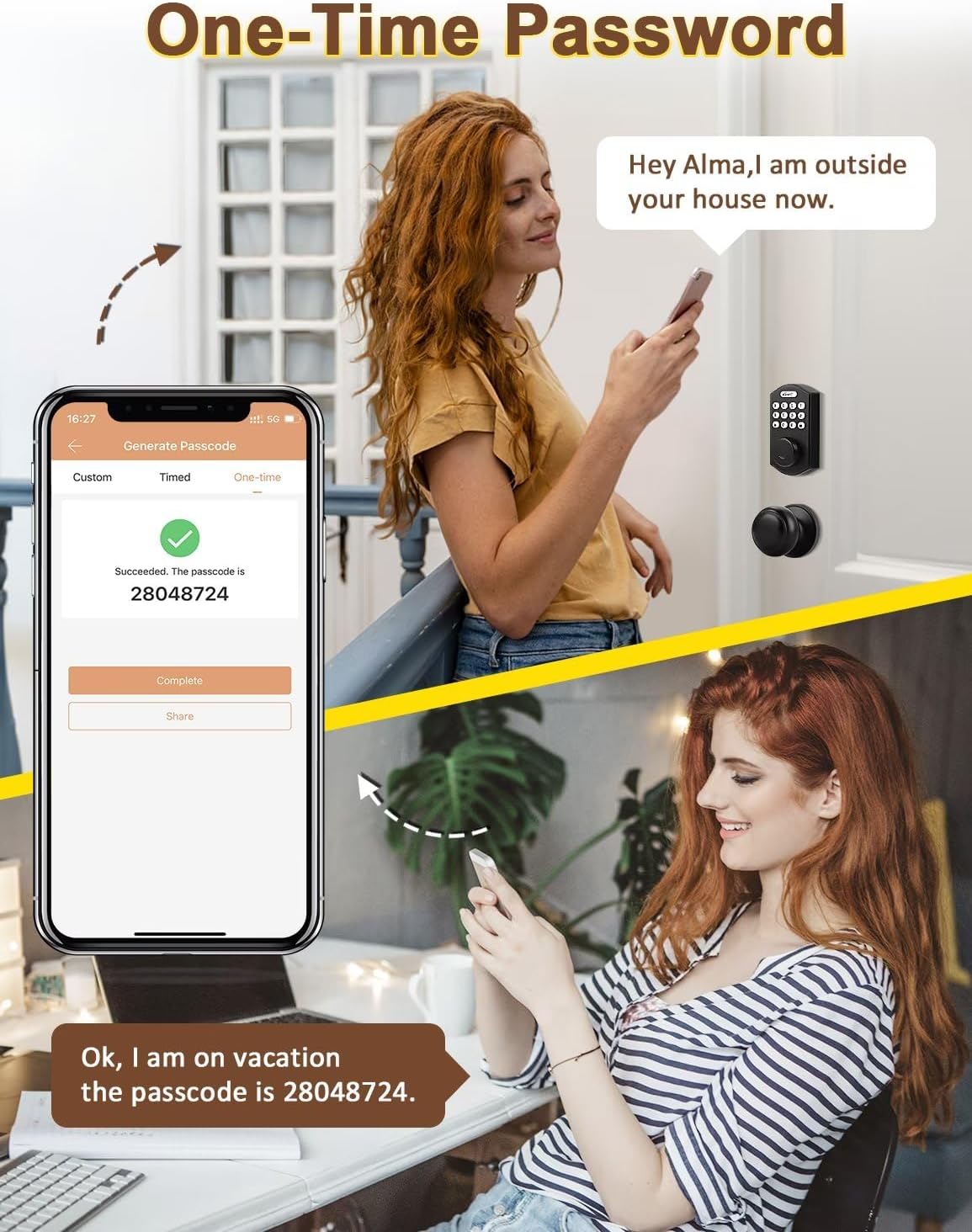 [HIGH SECURITY] The electronic door lock has been passed up to 100,000 times usage test, 2000N appearance pressure resistance, and has ANSI Grade 3 certification. 4-in-1 Smart Door Lock: Passcode + Fingerprint + APP Control + Key. You can give your friends and guests their own unique codes. A one-time password for temporary visitors, the one-time code will automatically deleted after use. Anti-peeping password protects your home security.