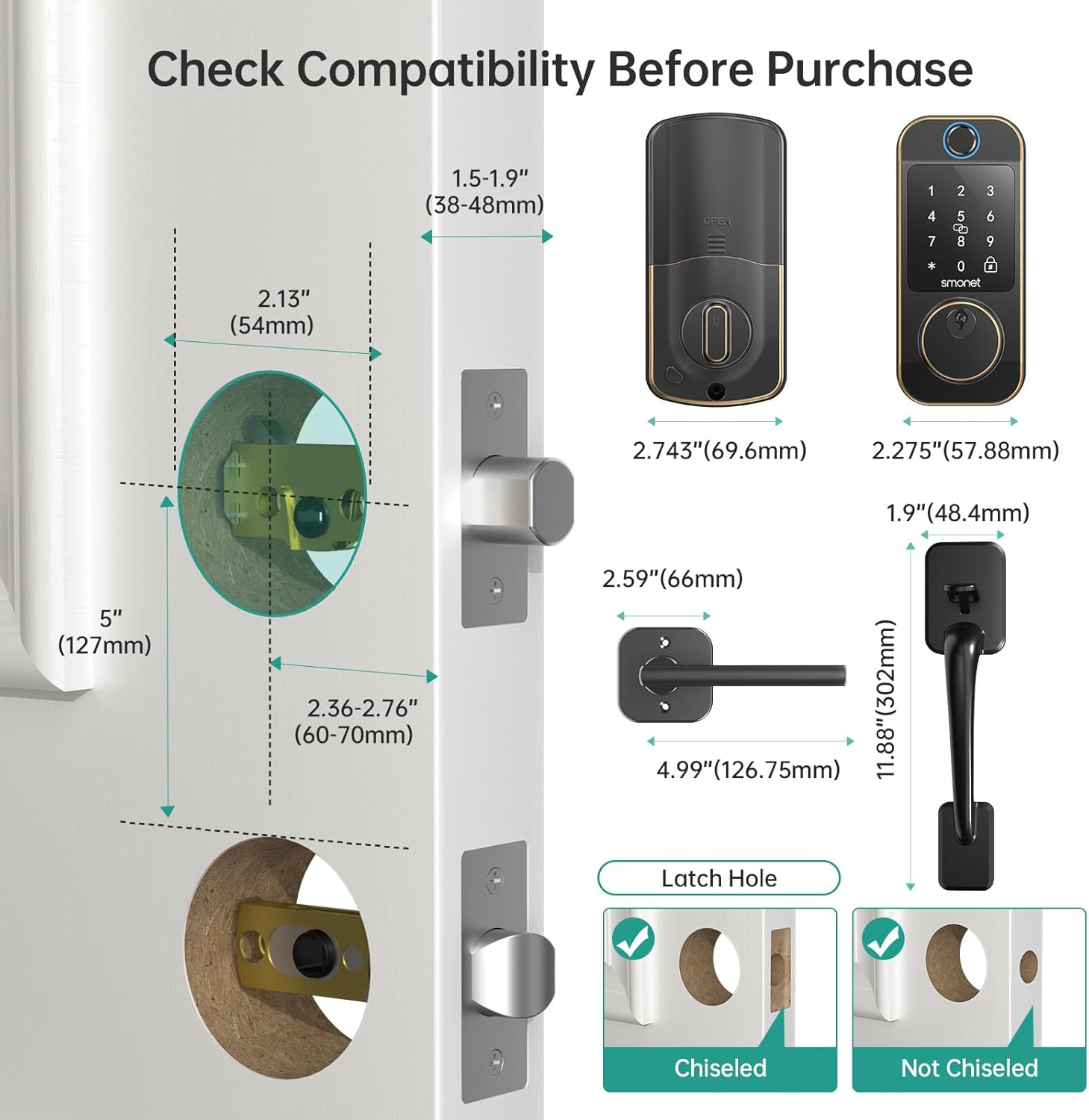 Easy Installation & Quality Assurance:With high quality and simple structure, long battery life, the digital door lock with keypad set can be installed quickly with a portable screwdriver in a short time.No extra hole is needed.No expensive locksmith is needed.The SMONET smart locks for front door set offers 30 day free return policy,one year warranty and lifetime customer service.