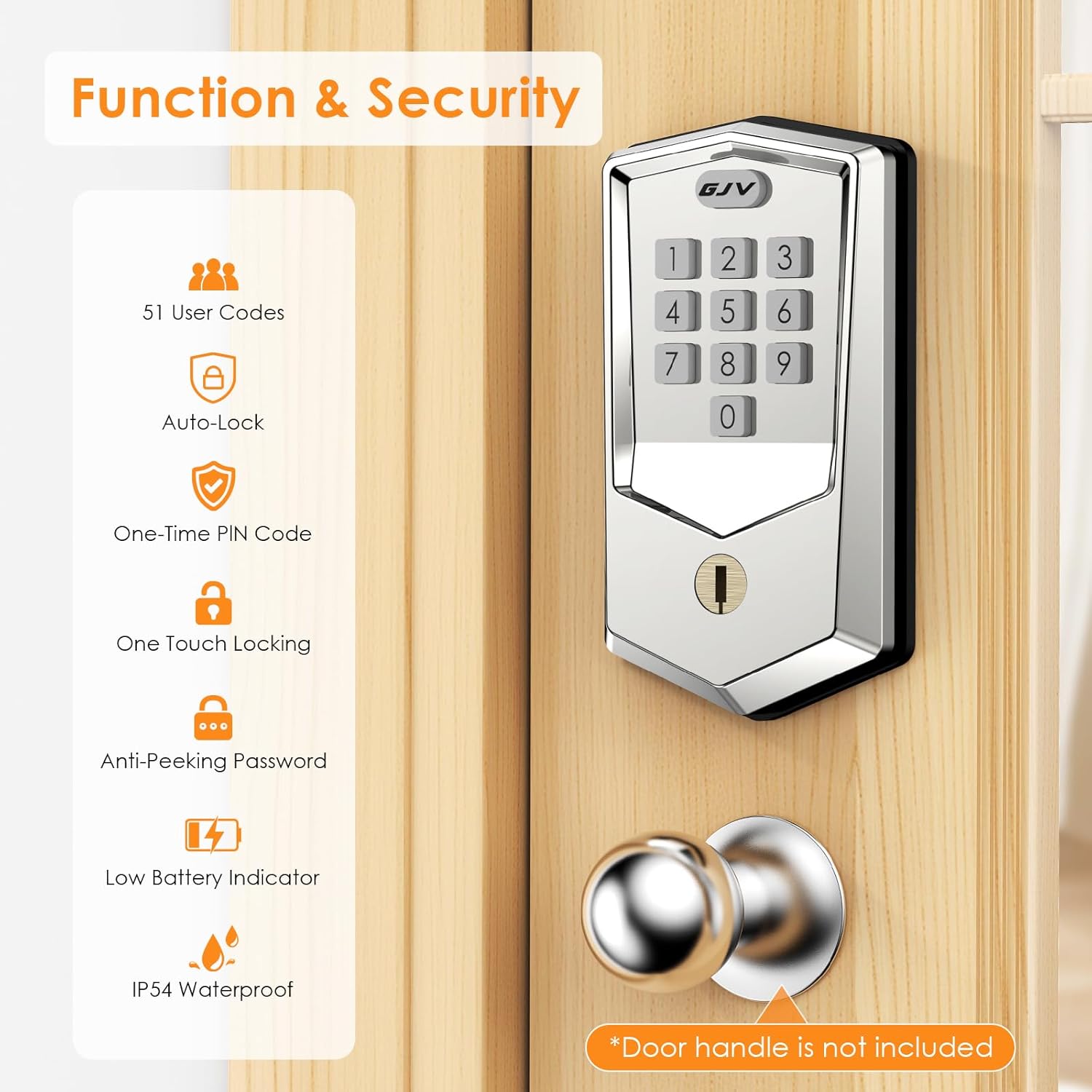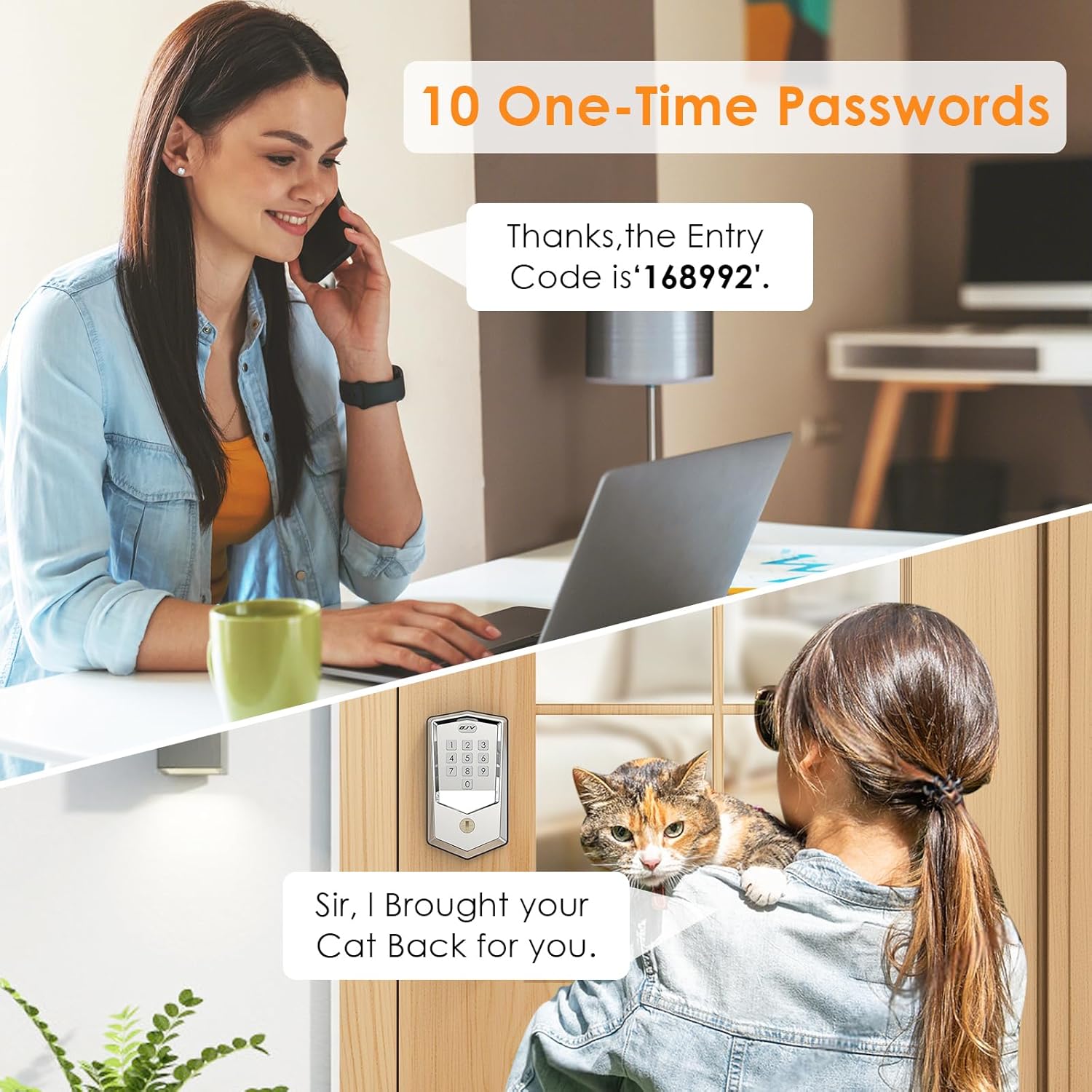 [Keyless Entry Door Lock 3-in-1] Supports up to 50 user passwords+2 backup keys for family access+10 one-time passwords for temporary visitors.