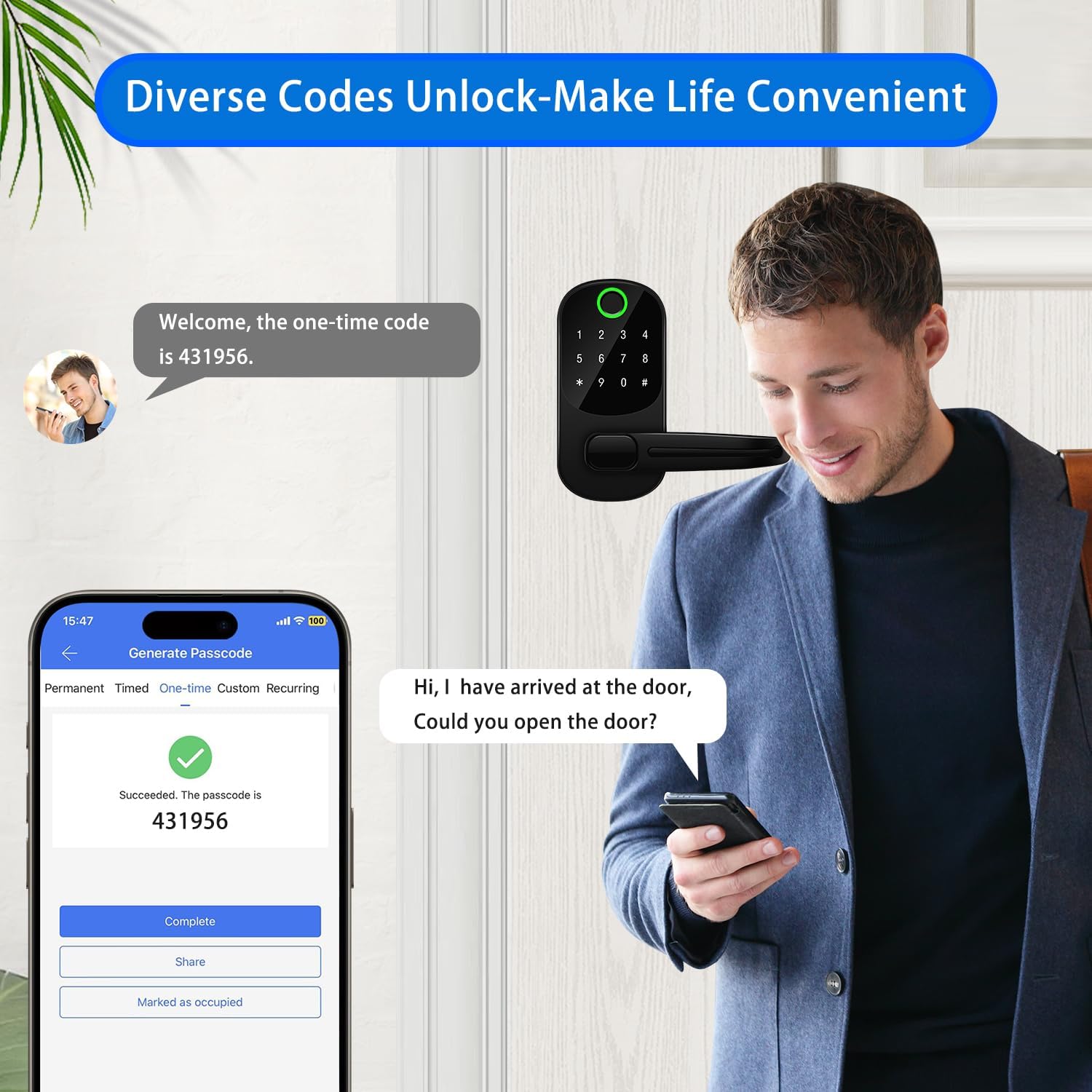 Convenient Access Management: Manage access effortlessly via the smart TTLock App. Grant temporary or permanent access to family, guests, or housekeepers, effortlessly keep track of unlock records. Perfect for homeowners and rental hosts manage effortlessly. Ideal for front door smart locks, vacation homes, and Airbnb properties