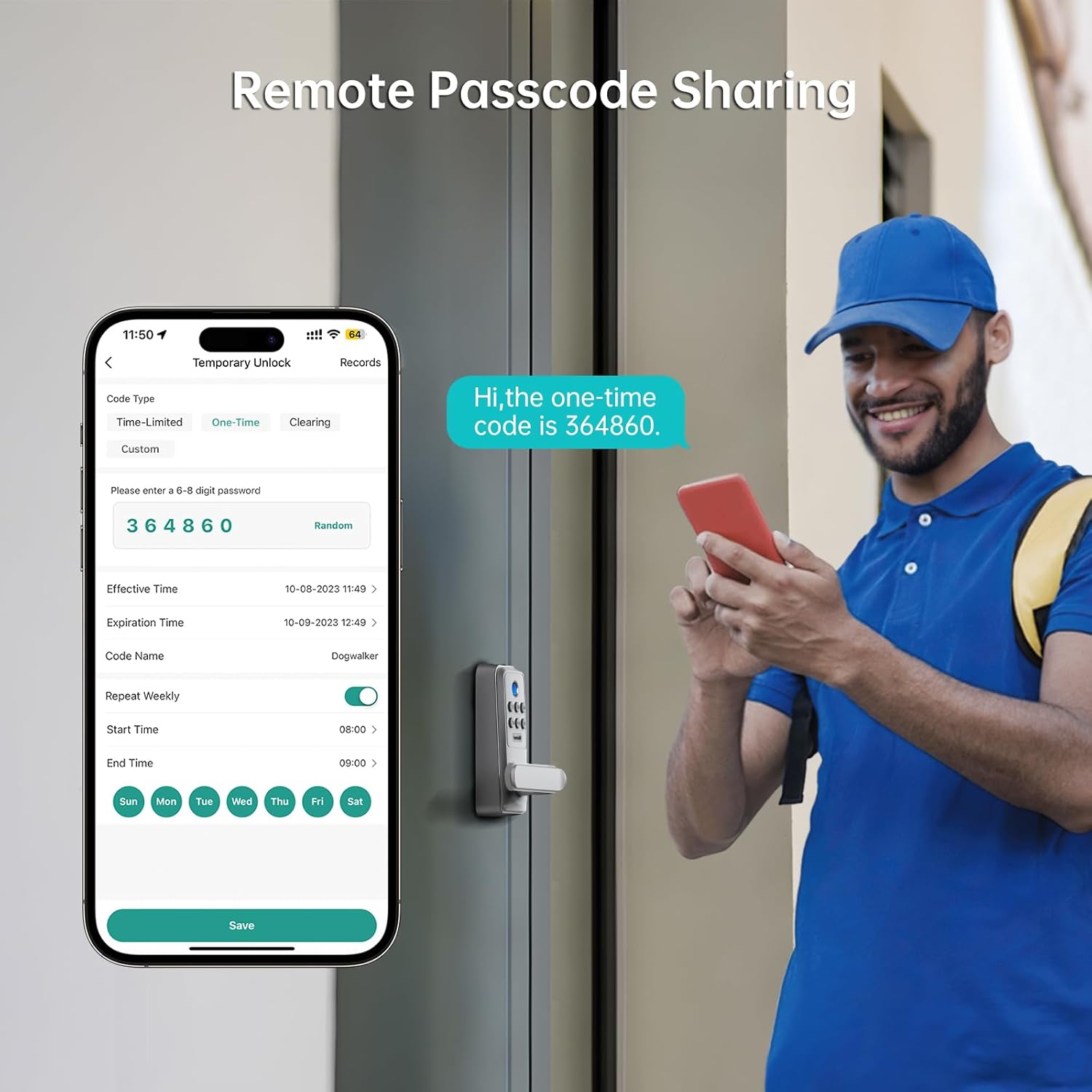 Remote & Voice Control: This smart lock features remote unlocking and locking (Includes a gateway that requires 2.4GHz WiFi), allowing you to remotely control and monitor your locks from anywhere, anytime via your phone, generating one-time or permanent passcodes for visitors. You can also control the lock with your voice by connecting to Alexa/google assistant.