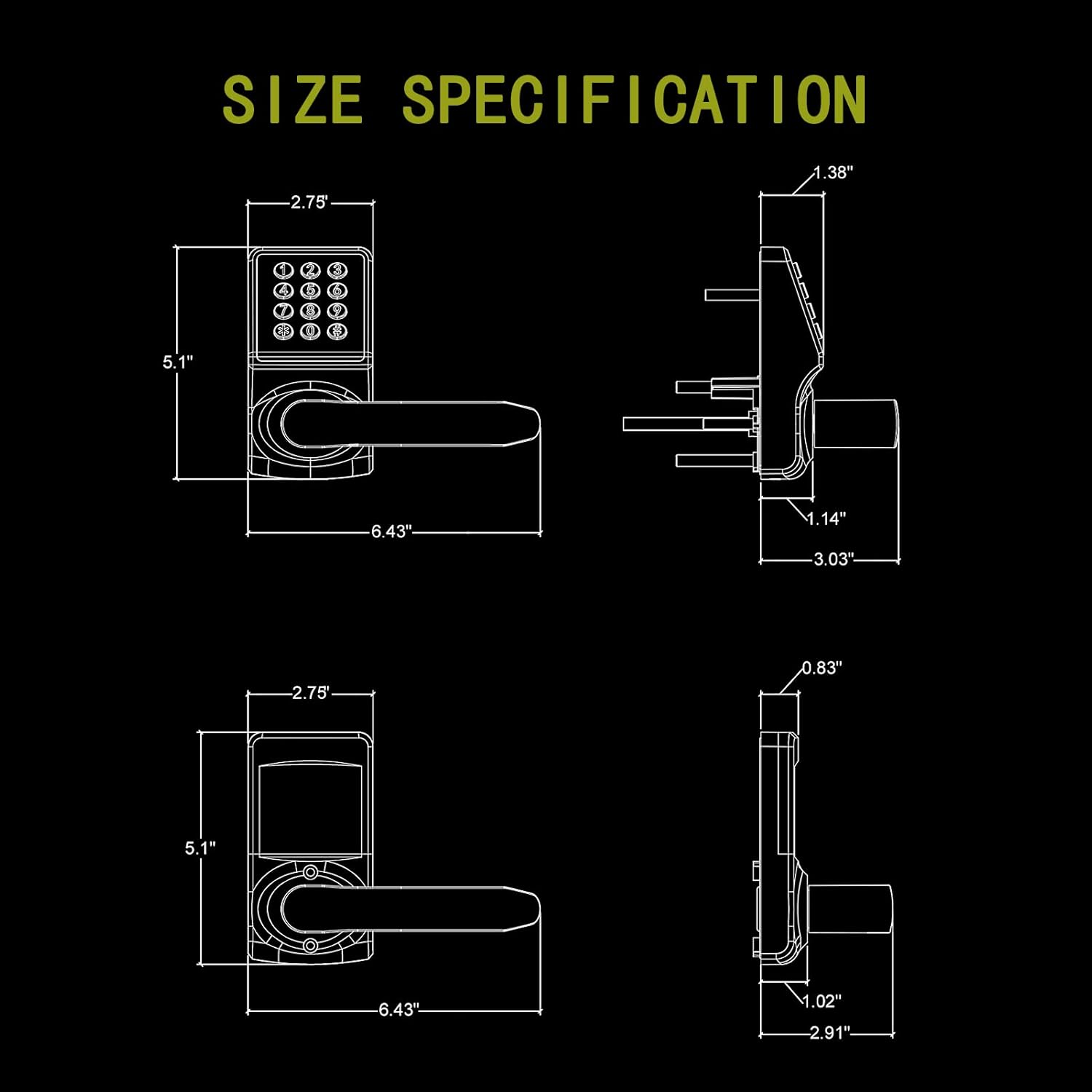 EASY INSTALLATION: All it need is just a small screwdriver, about 15 minutes you can install a smart digital door lock for your home or office. Compatible with exterior doors where keyed entry & Fits most standard residential door (the door thickness of 1.3 inch to 2.04 inch)