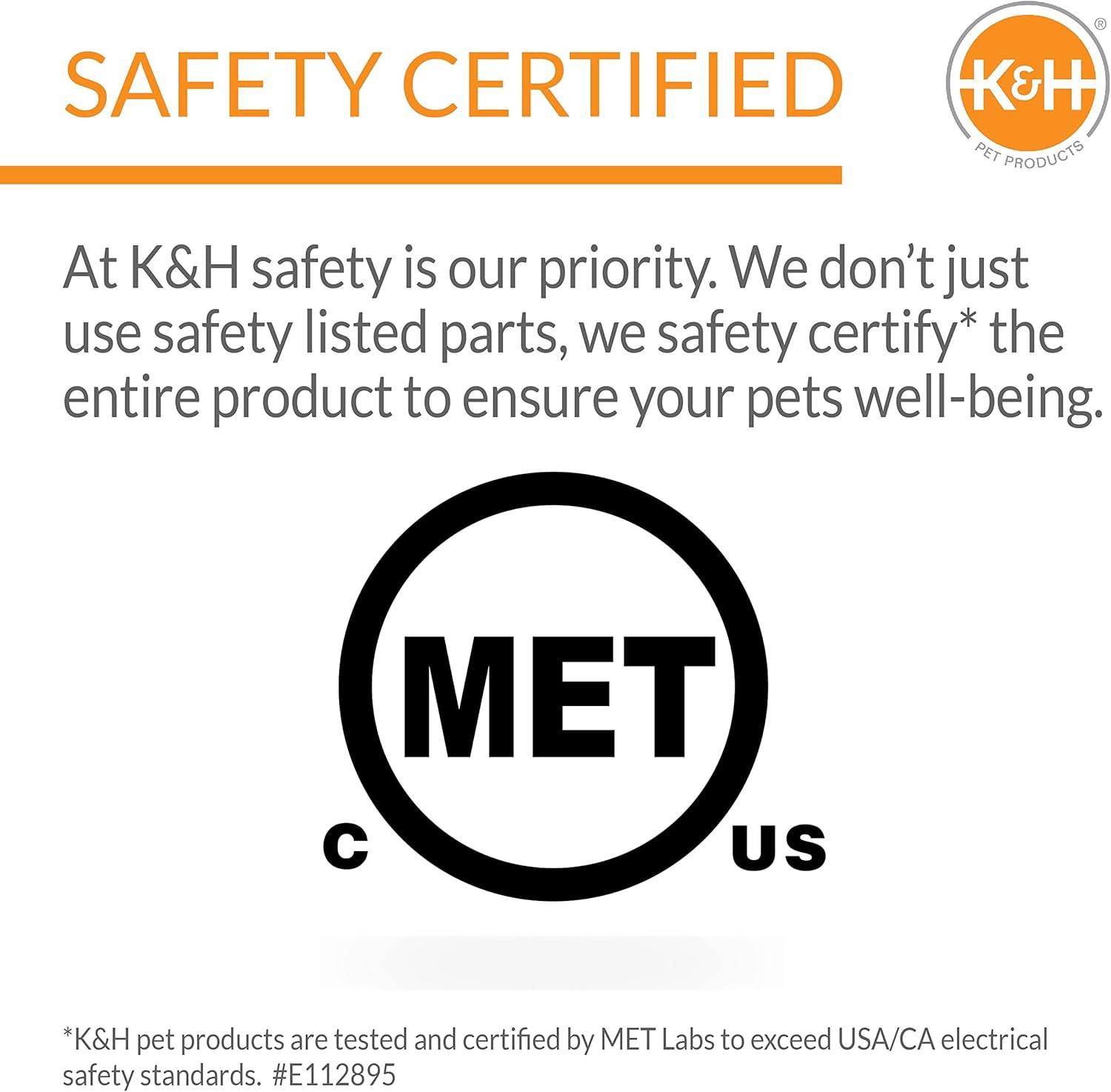 SAFETY: K&H Pet products are tested & certified by MET Labs and exceeds USA/CA electrical safety standards; we don’t just use safety listed parts, we safety certify the ENTIRE product.