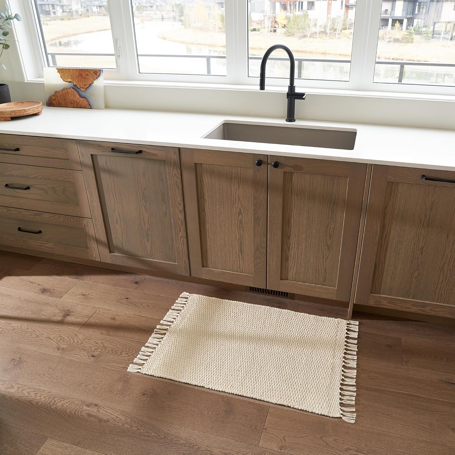 Cute Boho Rug By KIBAGA: Transform your home into a charming bohemian oasis! Let your home decor take on that special, laid back boho feel while experiencing the comfort (and luxury) of stepping onto a soft runner rug every time you enter your bathroom, bedroom or any other area in your home where you want to spruce up your decor. Infuse your home with the enchanting boho bathroom decor mat that is adorned with playful tassels and stylish patterns. Whether staged as boho rugs for your living room, boho kitchen rug, as a bathroom or nursery rug, or boho rugs fro bedroom the neutral cream color effortlessly blends with any decor, creating a modern and versatile look with a charming boho flair. Tailored to perfection and with the aim of offering you full flexibility, you can choose from different sizes. Each rug features an anti-slip bottom for added safety, keeping the rug securely in place. Get the comfort your everyday life deserves! The chic boho rug not only enhances your home’s style but also adds a touch of luxury feel with its softness, owed to the top-notch cotton fabric. Keeping it easy & comfy – even when it comes to cleaning! Maintaining the durability and hygiene of the runner rug is absolutely easy. First check the tassels and tighten them as necessary, then simply put the modern rug into the washing machine at cold wash. Simple, hassle-free – just the way it should be. Embark on a bohemian escape every time you step into your bathroom with KIBAGAs’ boho bathroom rugs.