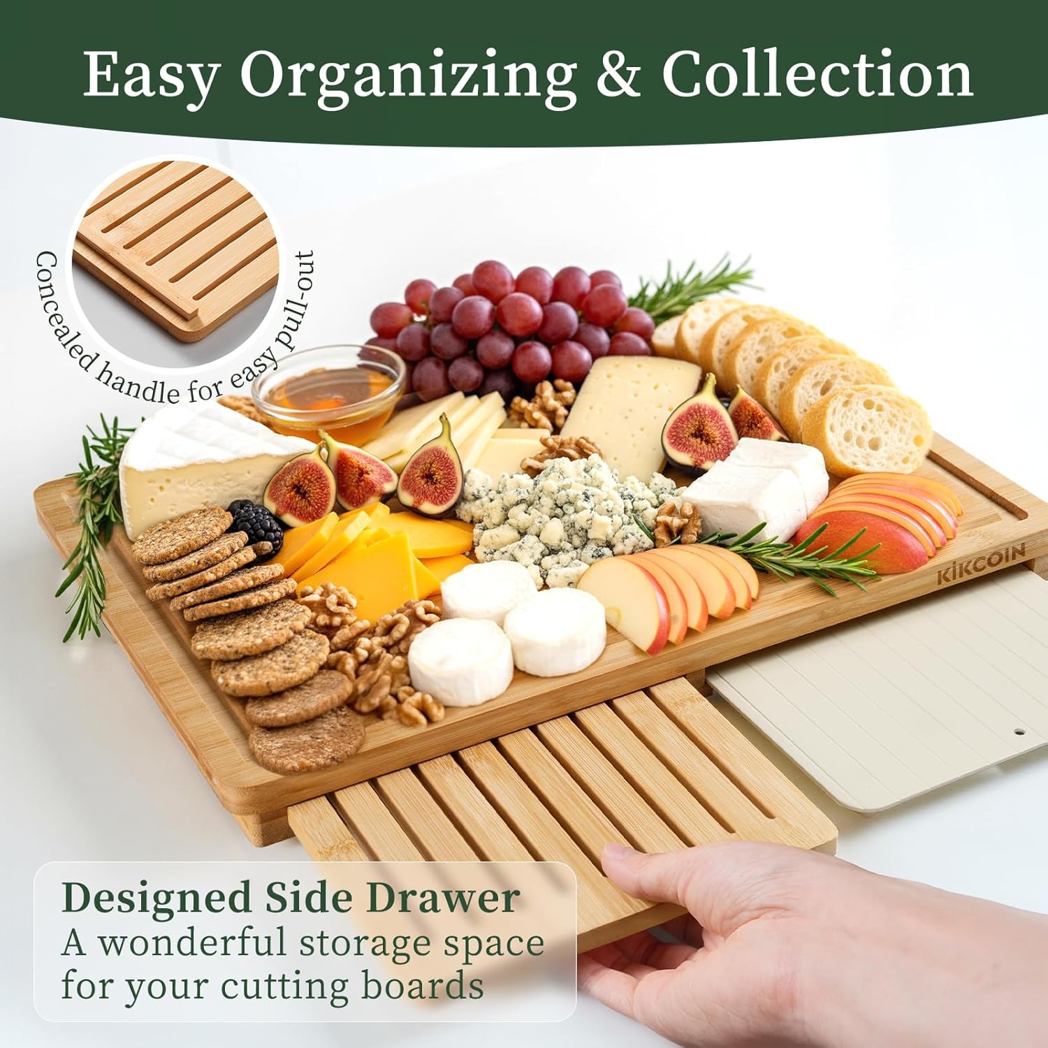 ORGANIZED AND SPACE-SAVING – Built-in organizer is designed to store a defrosting tray and bread cutting board underneath the large bamboo board. The drawer is used for easy storage and helps to simplify your kitchen