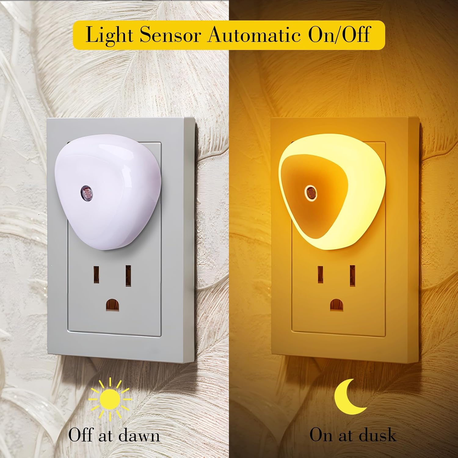 【Dusk to Dawn Sensor Night Light】Built-in sensitive light sensor, the nightlight automatically turns on at dusk and off at dawn. Emitting gentle light