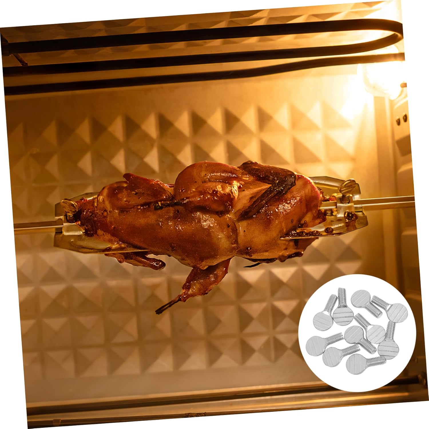 -Secure attachment: these screws are designed to securely hold the rotisserie skewer in place, ensuring it remains stable during cooking air fryer grilled meat skewers