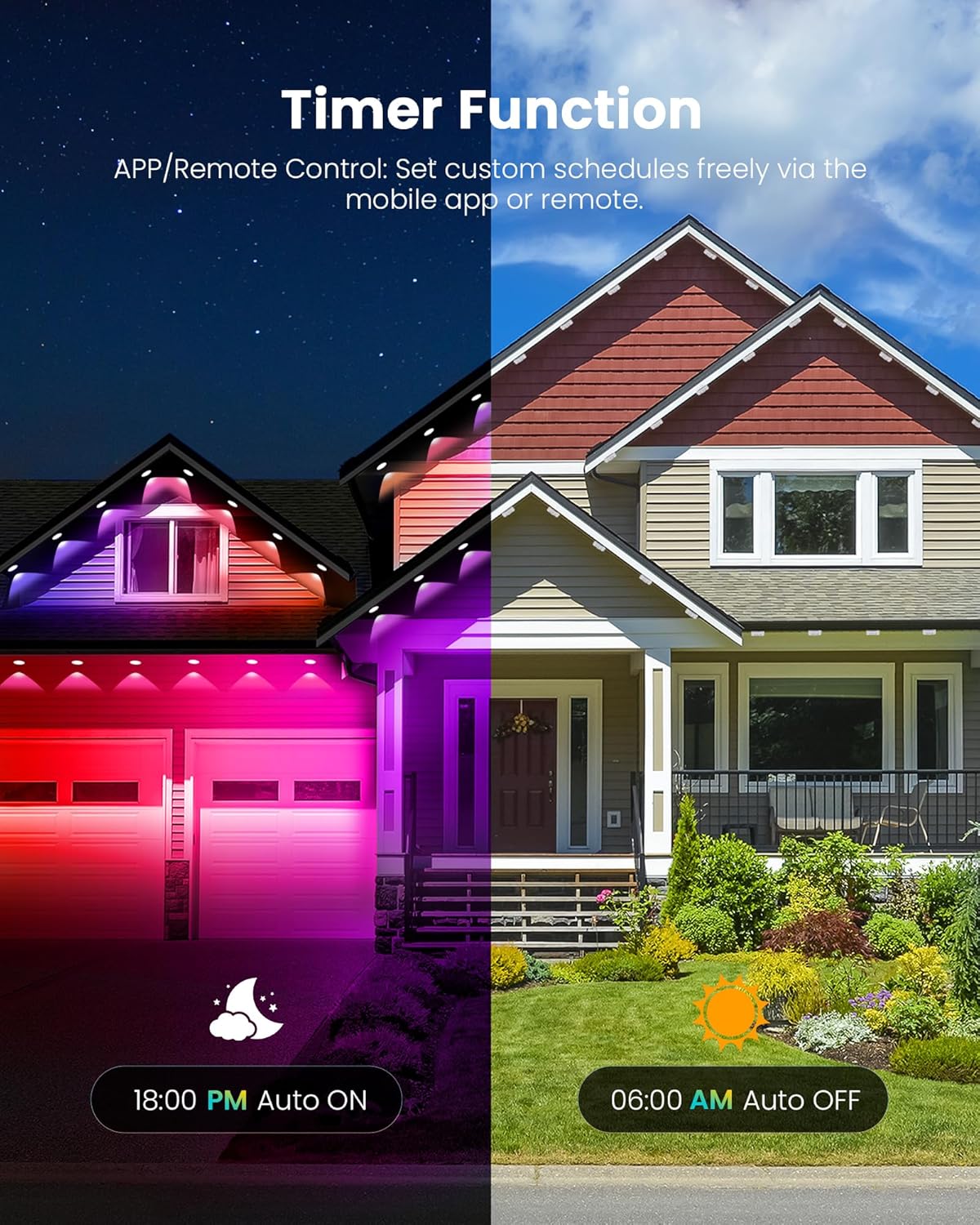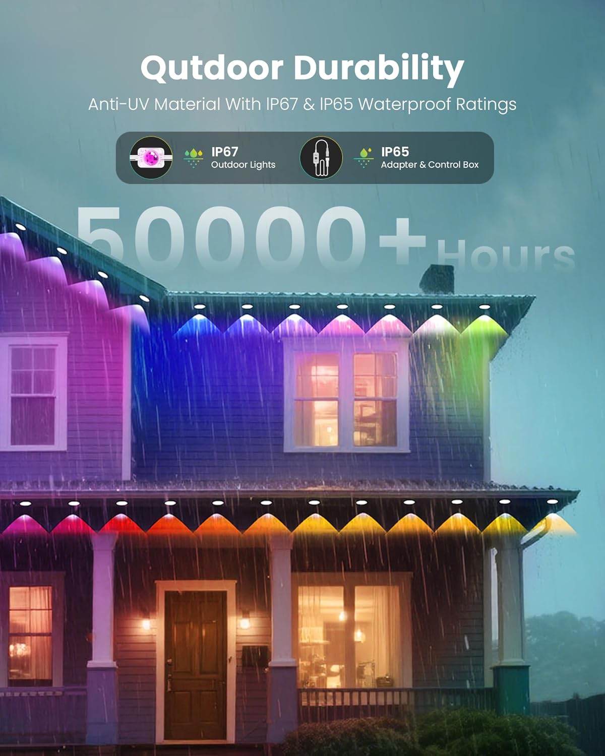 All-Weather Toughness – IP68 waterproof & UV-resistant, these permanent outdoor lights for house withstand -20°C to 60°C (-4°F to 140°F). Perfect for house lights outdoor all year, rain or shine!