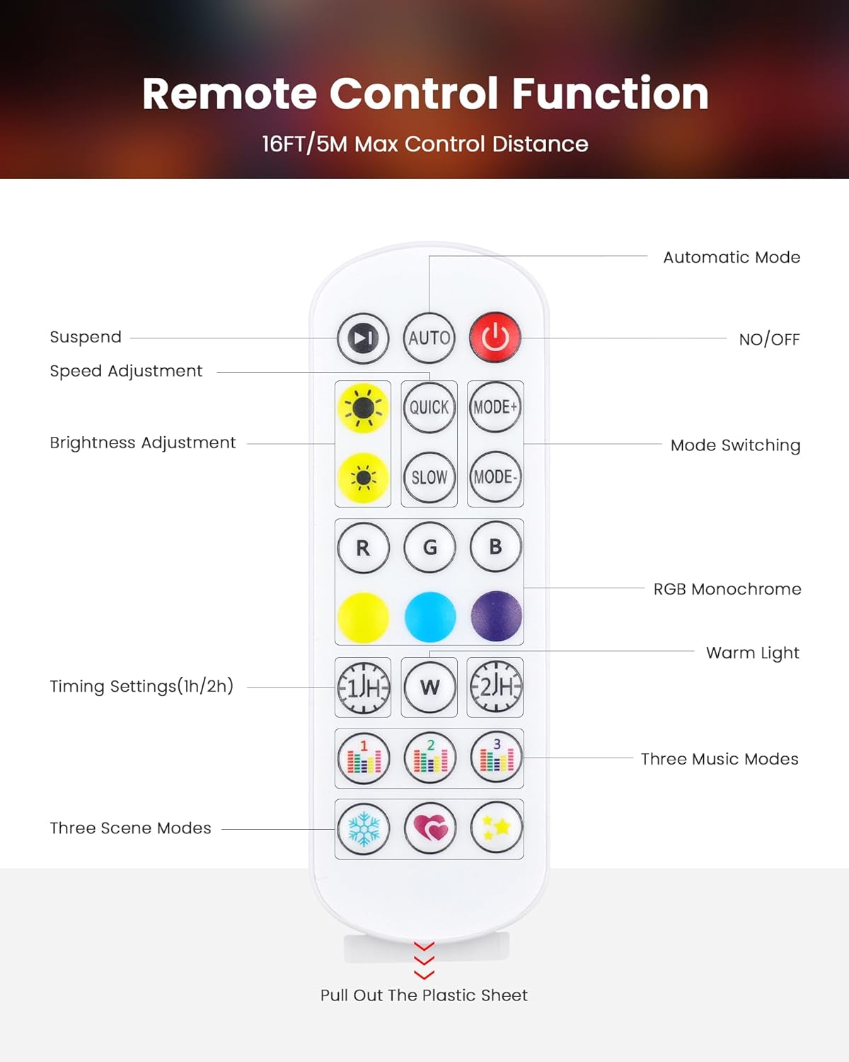 Easy App & Remote Control – Adjust brightness, colors, and dynamic effects via the app or included remote. —just simple, intuitive operation!