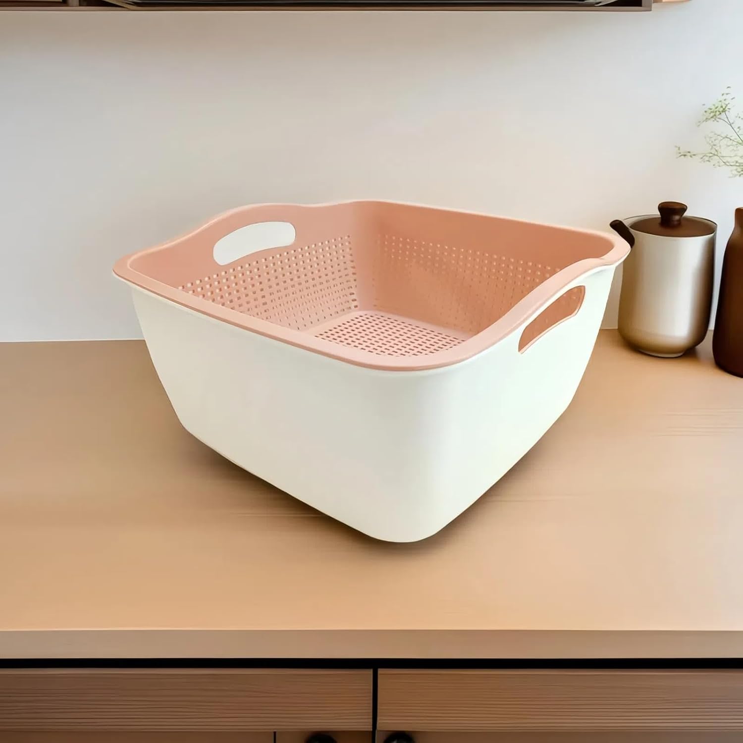 Be the first to review “Kitchen Colander Drain Basin 2 in 1 Plastic Basket Strainer Bowl with Handle (white/pink)”