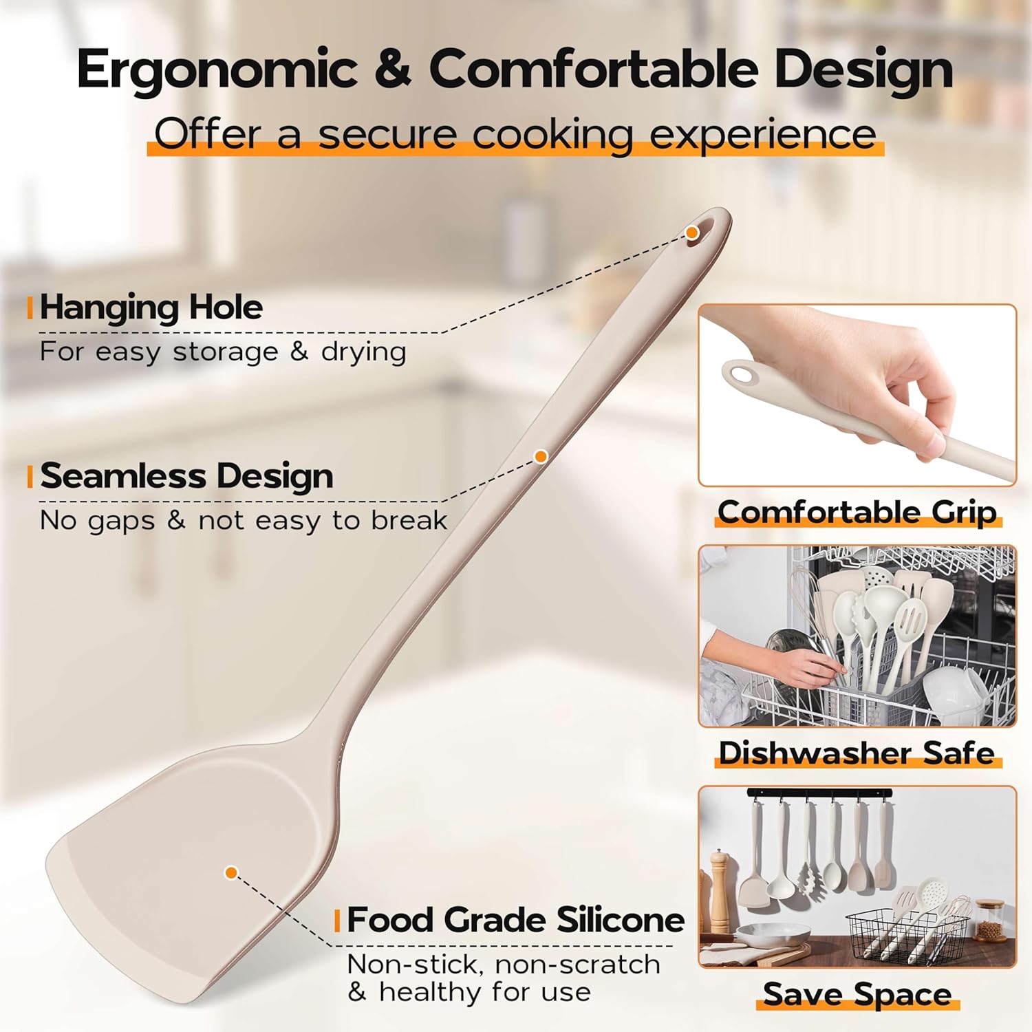 Flexible & Sturdy: Soft, bendable silicone heads gently handle delicate tasks, while reinforced handles provide strength for heavy-duty cookingPerfect Balance: The ideal combination of flexibility and rigidity ensures effortless flipping, stirring, and serving, even with heavy or sticky foods