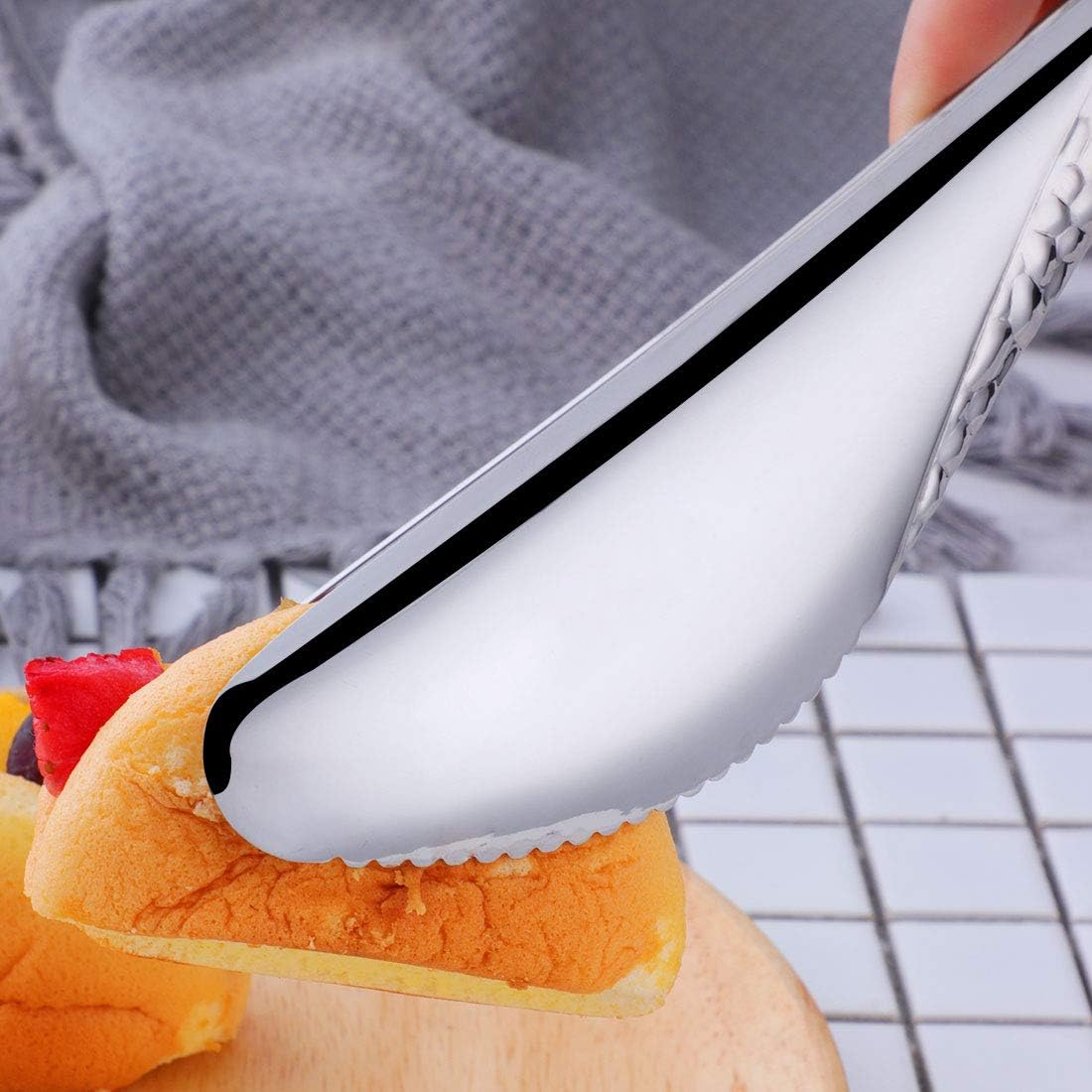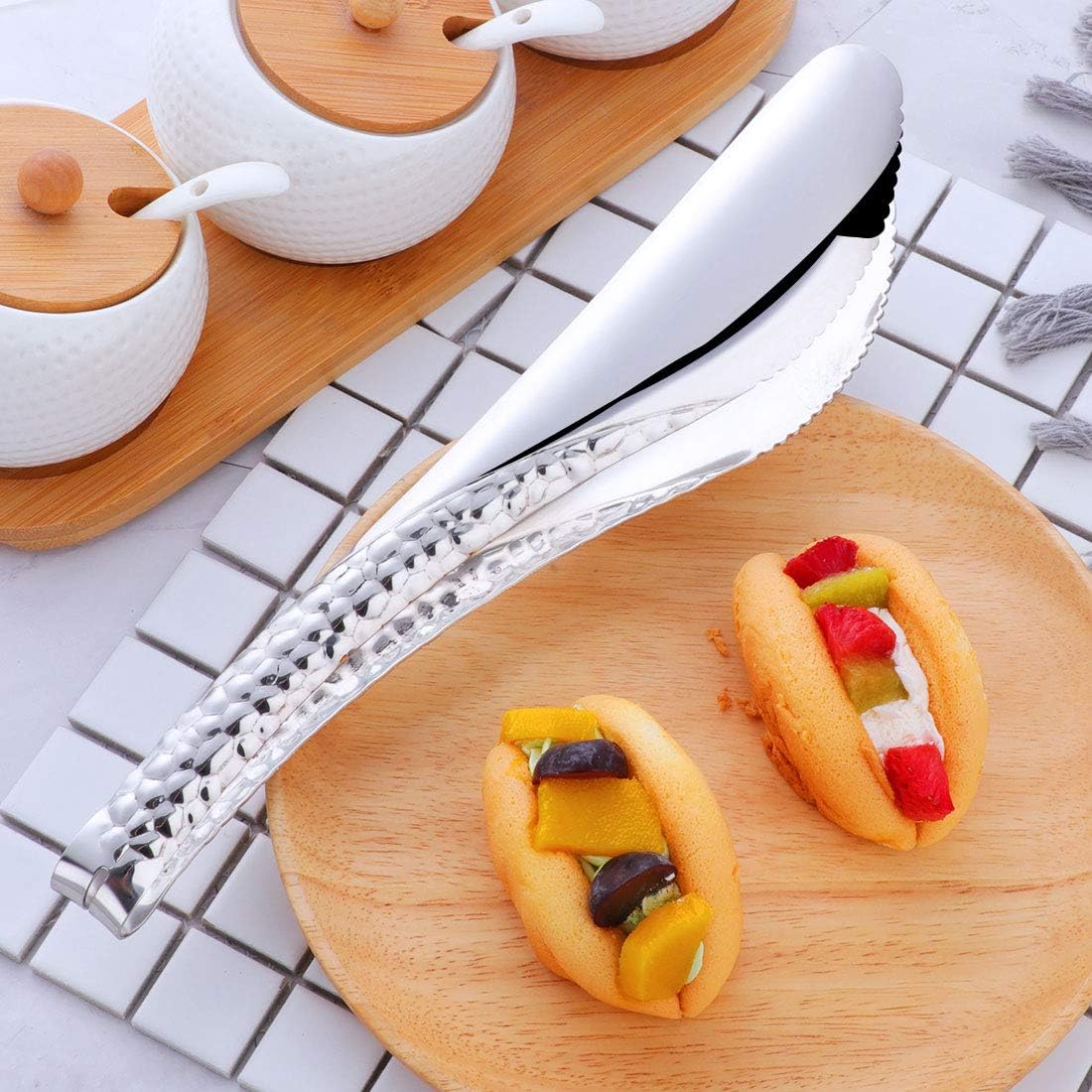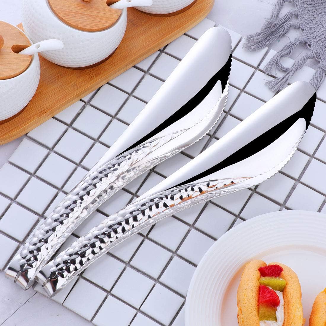 Kitchen Food Clamp Serving Tongs 18/10 Stainless Steel BUY&USE Pack of 6 10-Inch Hammered Surface Silver Kitchenware for Bread Barbecue Baking