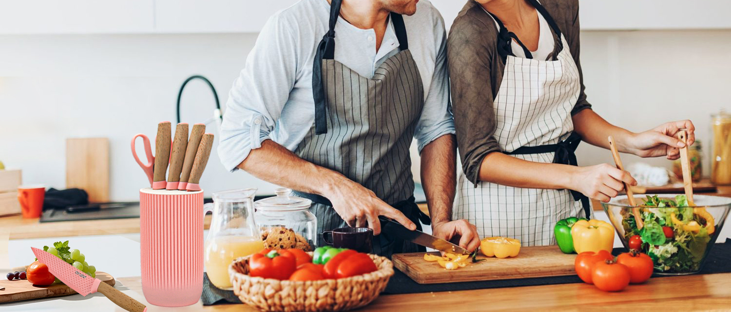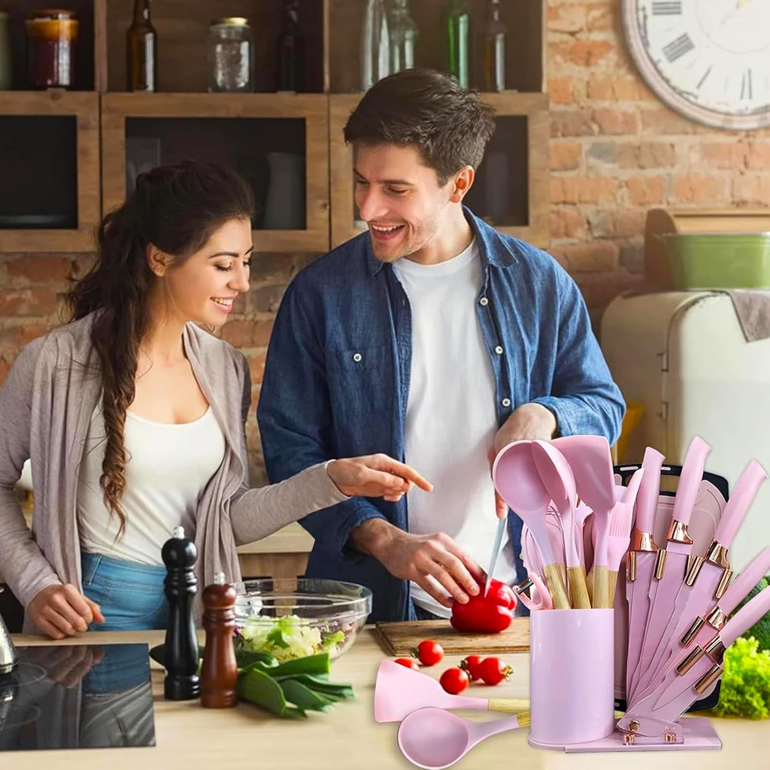 【20 Pieces Professional Kitchenware】: You will receive 4 small and large knives + 1*bread knife + 1*scissors + 1*storage rack + 1*peeler + 1*clamp + 1*whisk + 1*oil brush + 1*salad spoon + 1*spatula + 1*leak spatula + 1*frying spatula + 1*funnel + 1*soup ladle + 1*cooking spoon + 1*spaghetti claw + 1*cutting board. Professional cookware and knives, precise division of labour, easy to deal with a variety of ingredients.