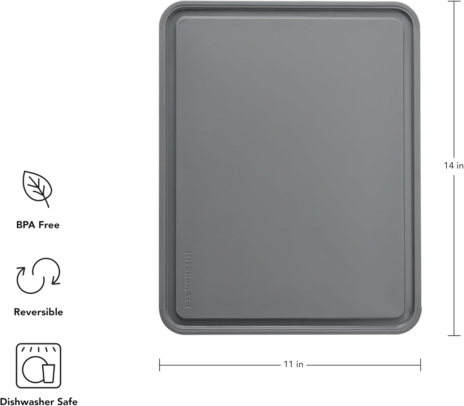 KitchenAid Classic Plastic Cutting Board with Perimeter Trench and Non Slip Edges, Dishwasher Safe, 11 inch x 14 inch, Gray