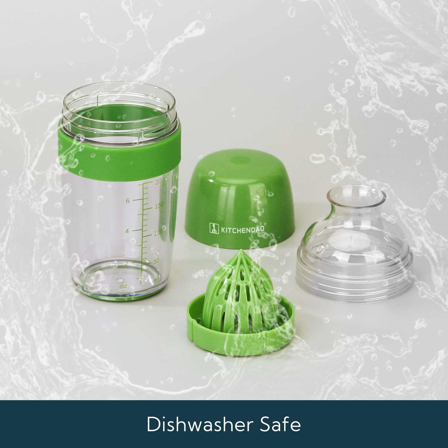 Easy to clean – Dishwasher safe & detachable; The built-in oz/ml measurements on the salad dressing container allow for precise portioning without extra tools, simplifying your kitchen tasks.