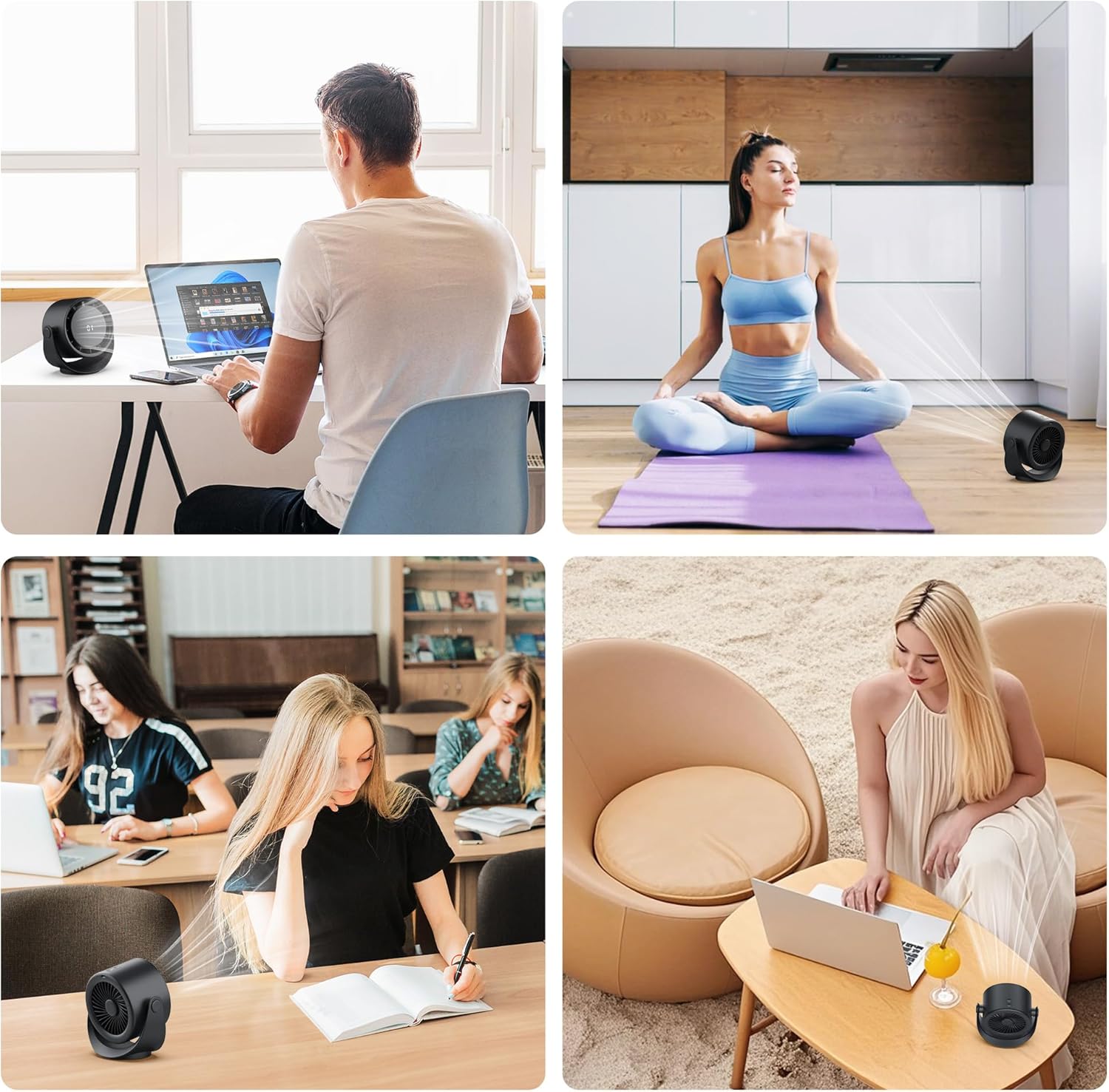 Comfortable & Quiet Airflow: Our desk fan’s brushless motor ensures whisper-quiet operation, ideal fan for offices or sleep. Its turbo design delivers a 360° airflow, max wind speed reaches 17.4ft/s for efficient yet gentle airflow