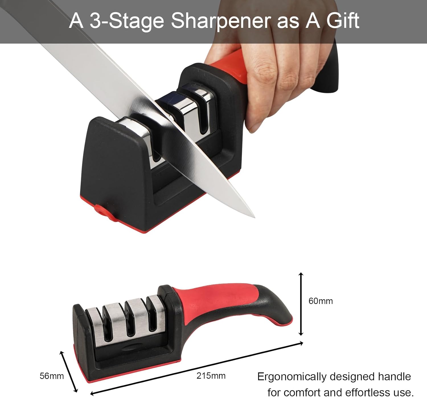 ALL-IN-ONE KNIFE BLOCK SET- 7 Pieces Kitchen Knife Set includes: 8″ Chef knife, 8″ Bread knife, 8″ Carving knife, 5″ Utility knife, 3.5″ Paring knife, a Rubber wood knife block and a 3-Stage Sharpener