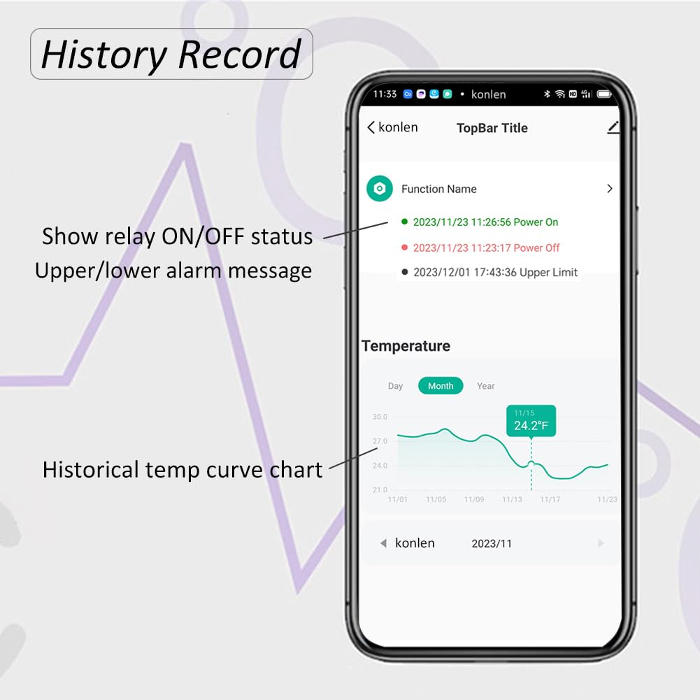 History record: Users can also check the device status and historical temperature curve chart from App log.