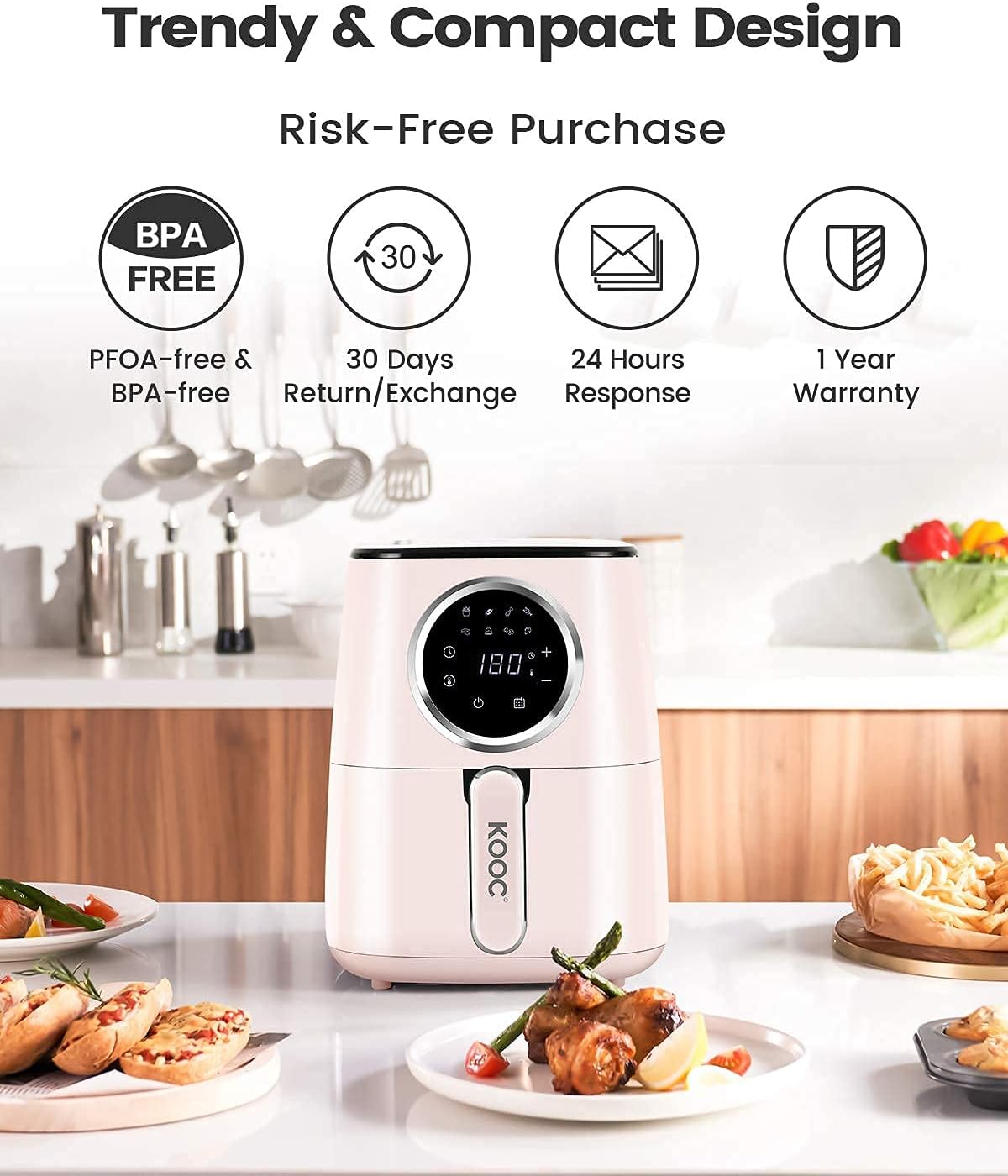 [Superior Design & Service] 4.5 qt basket serves your family of at least 3-4 people, and fits 12 pieces of chicken wings or 2 pounds of french fries, while the compact size would easily fit on your countertop