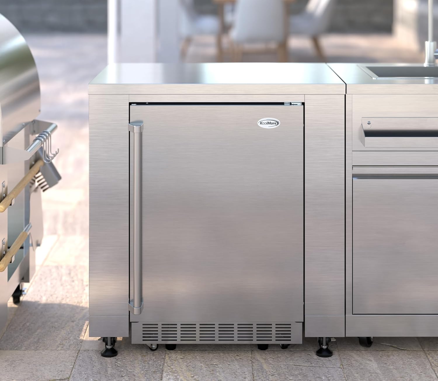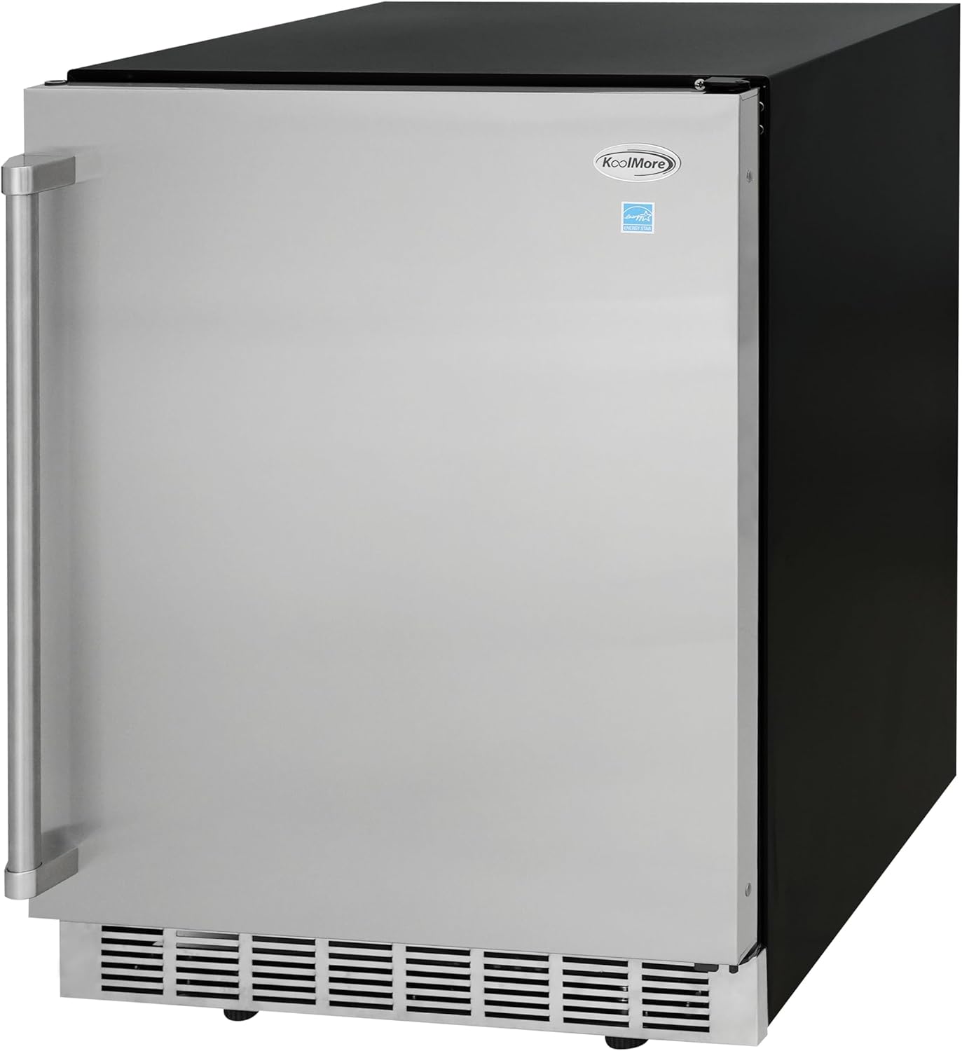 KoolMore 24 in. Outdoor Kitchen Stainless Steel Refrigerator 5.5 cu. ft. Capacity with Automatic defrost, Blue LED Lighting and IPX4 Rating, CSA Listed (KM-OKS-OFRC-58SS)