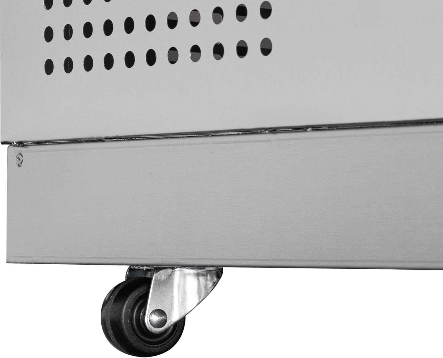 Clean and Accommodating Design – Made from heavy-duty, rust-resistant stainless steel our sandwich prep table offers exceptional cold food storage thanks to large capacity shelving, dual access doors, and rolling wheels for quick floor cleaning.