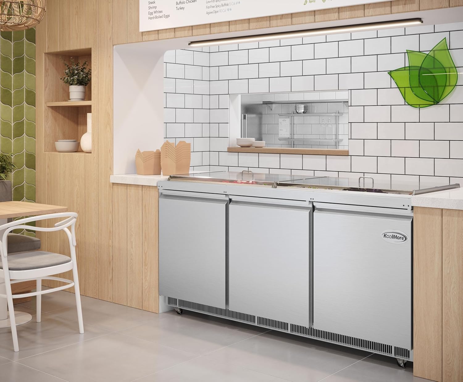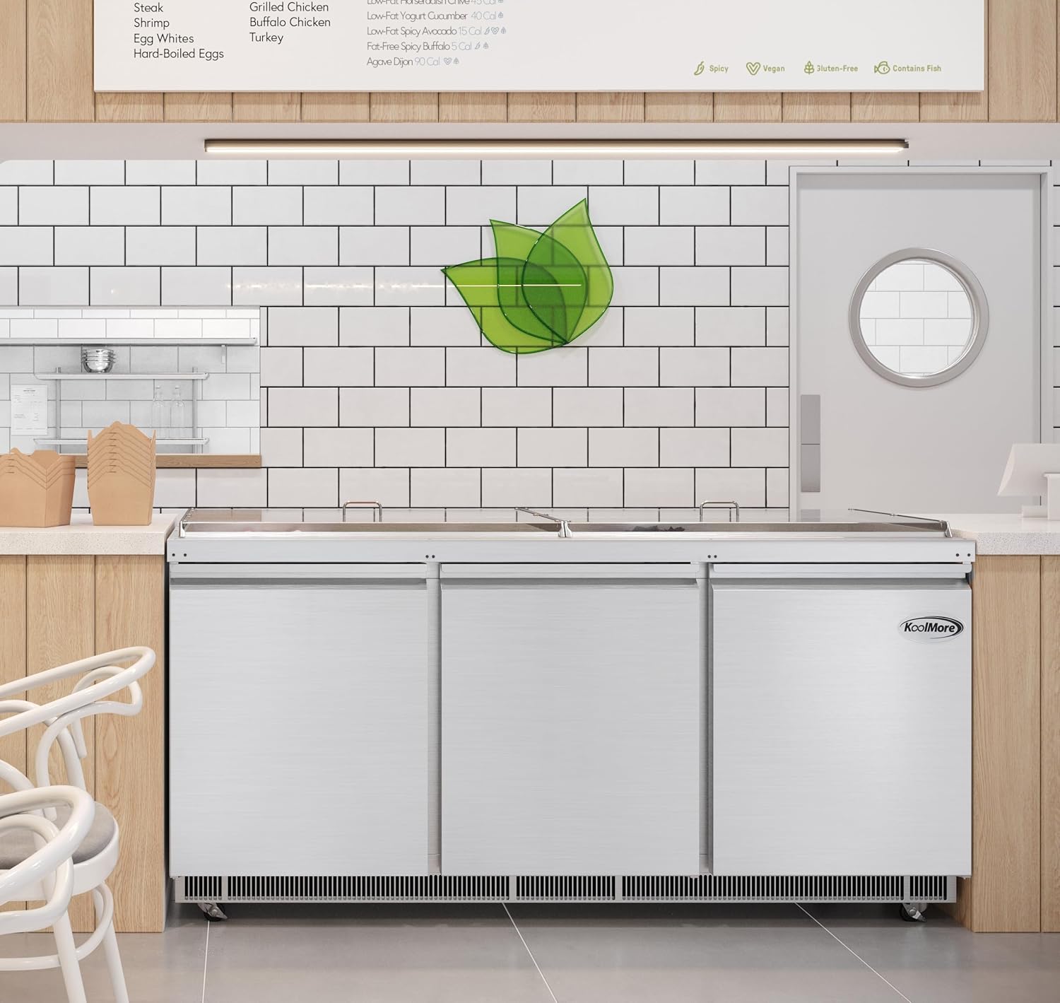 ETL Listed and Warranty – This KoolMore commercial prep table is ETL listed for safety and sanitation and comes backed by 1-year parts and labor and 5-year compressor warranty to ensure reliable, long-lasting efficiency.