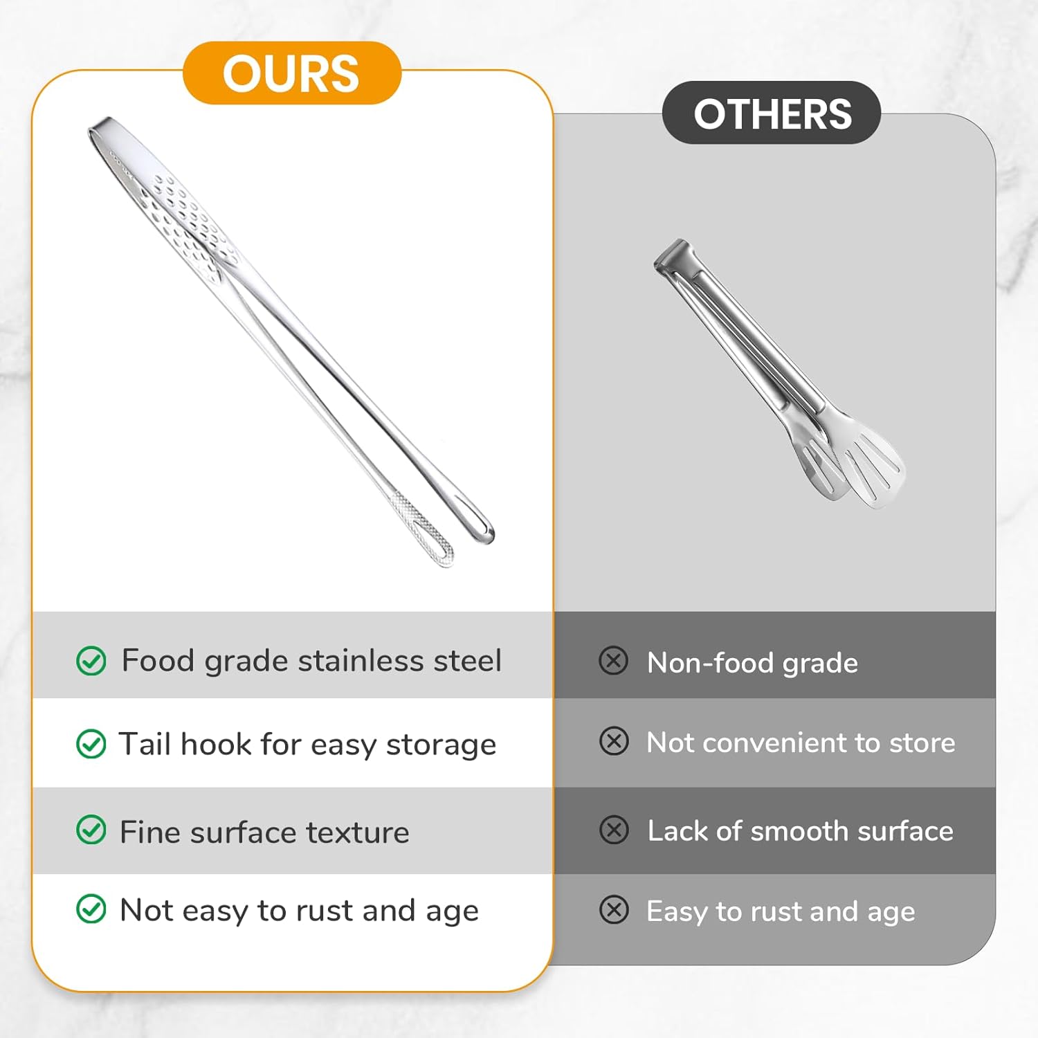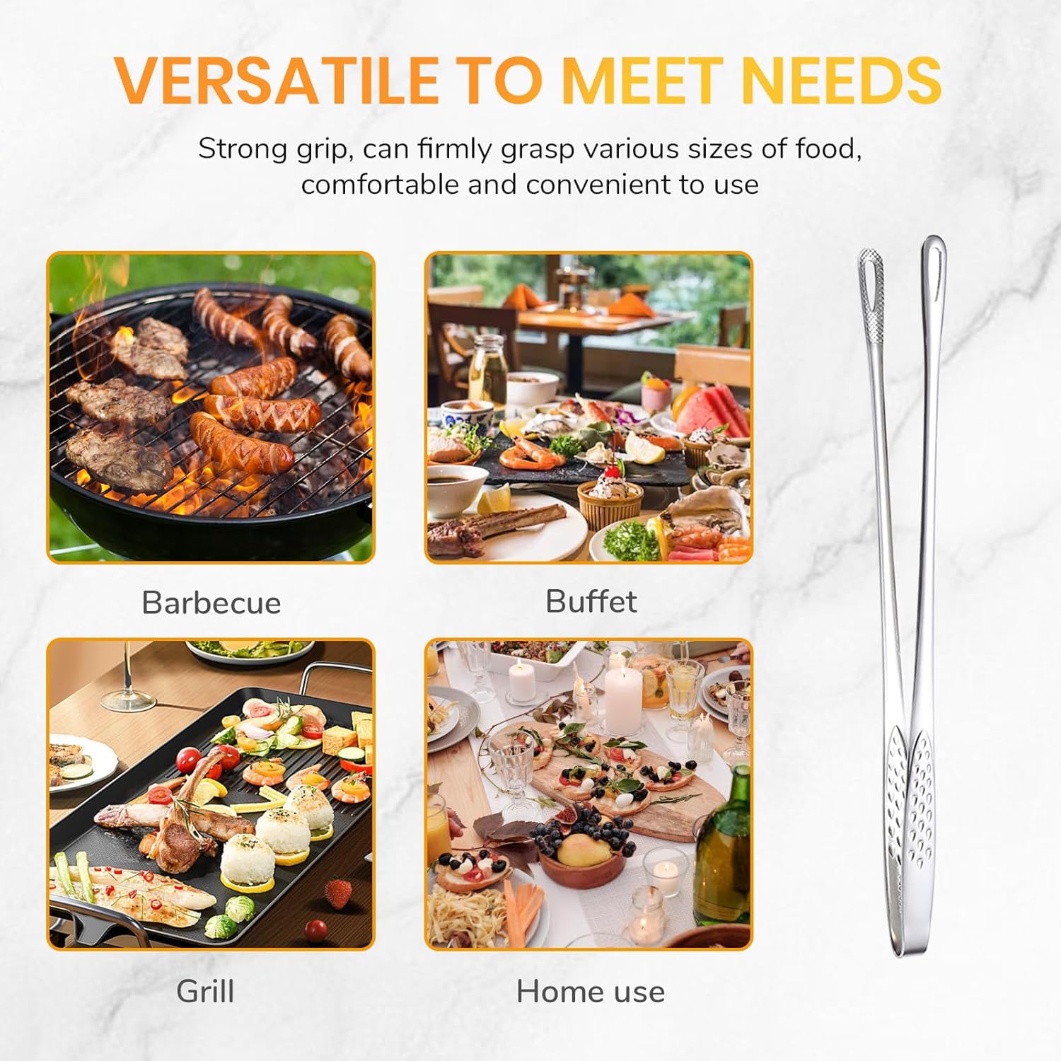 【Ergonomic Kitchen Tongs for Cooking】 cooking tongs stainless steel are about 11 inches/ 28.2 cm in length, which are long enough for you to grab food which you want and can save effort, our kitchen tongs provide a secure grip and easy maneuverability, helping you serve food safely and efficiently at any gathering.