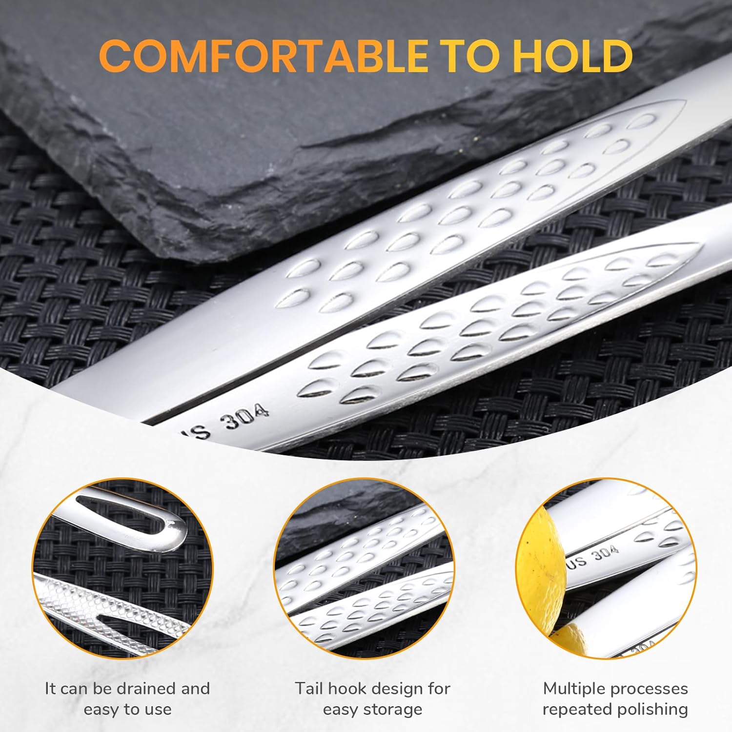 【Single Hole Hollow and Non Slip Design】 Korean BBQ tongs feature single hole hollow design for easy oil and water drainage, the handle is designed with non slip, so that you can grab food without worry about falling