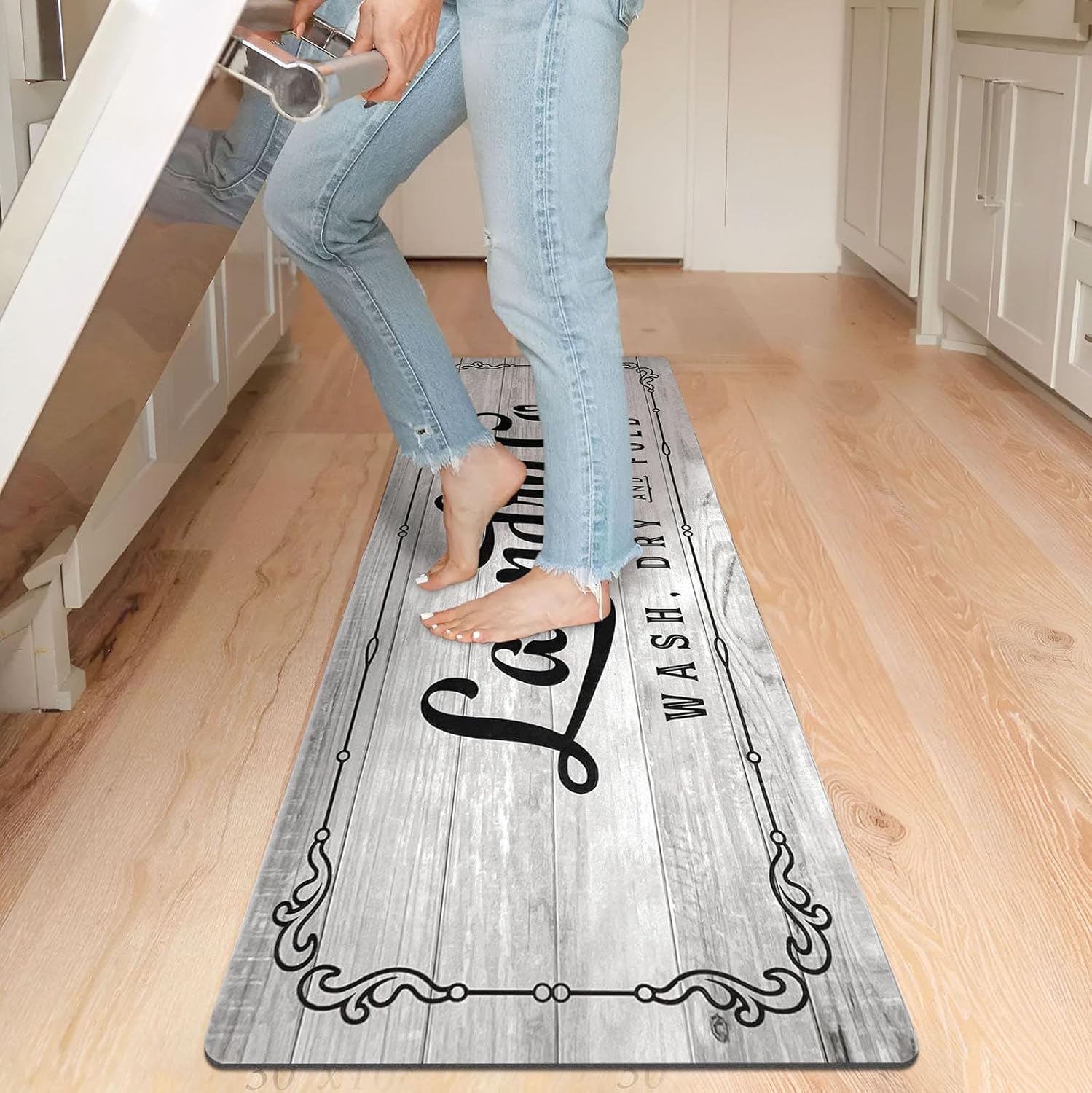 Anti-Fatigue Laundry Rug: The laundry room mats feature with flocking finish & dense rubber foam backing. The soft flocking finish makes you feel comfortable under foot, and the rubber foam has a nice cushion, comfortable to stand on