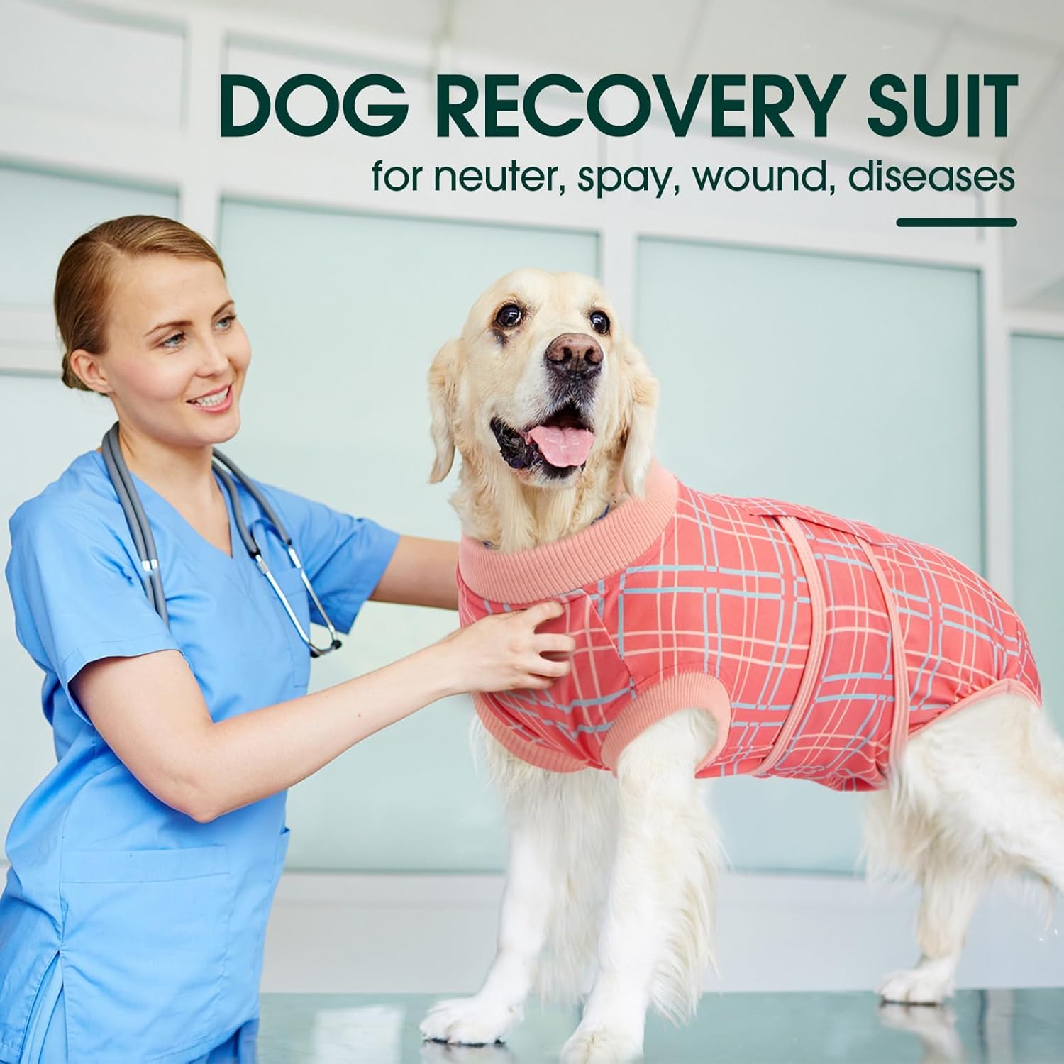 RECOVERY SUIT for MALE FEMALE DOGS: Suitable for spaying and neutering, with an adjustable back length and closure for easy donning and doffing. Machine washable, easy to clean and dries quickly to ensure optimal hygiene for your pet during recovery