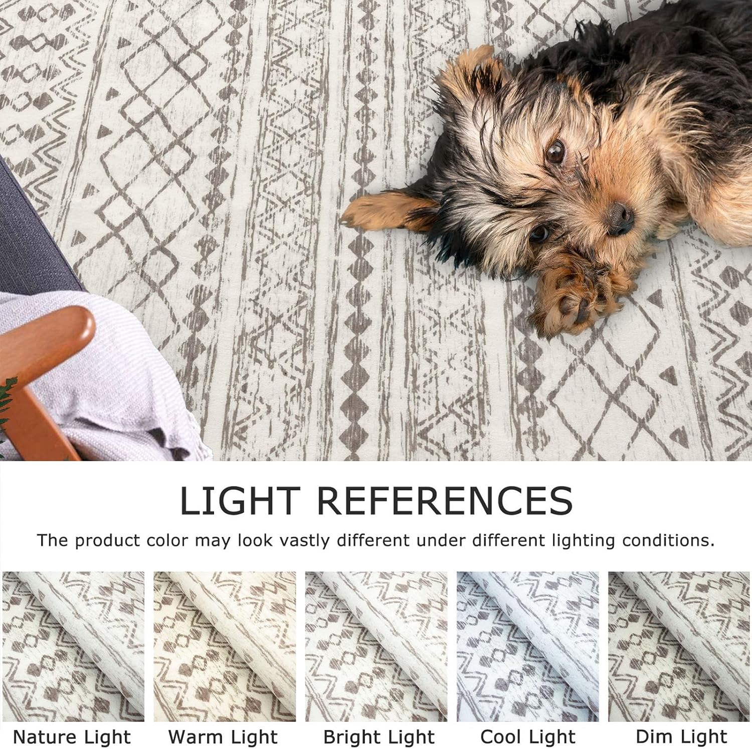 Machine Washable: For daily care of the washable rugs, sweep or wipe. When vacuuming, use a low-speed or robotic vacuum to prevent movement due to the soft backing. For deep cleaning, machine wash in cold water, avoiding bleach to preserve colors.