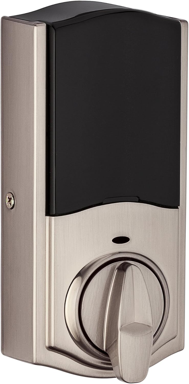 The Smart Code touchpad smart lock with Home Connect technology enables the lock to wirelessly communicate with other devices in home. The lock allows the user (through a third party smart home controller) to remotely check the door lock status, lock or unlock the door and receive notifications via email or text. Smart Code is a one touch locking motorized deadbolt. With your personalized code, you can enter your home with the convenience of keyless entry and the back lit keypad provides increased visibility. Smart Code is easy to install, program and use, and operates on 4 AA batteries. It also features Smart Key Security as the backup keyway. The crisp, clean appearance of the Satin Nickel finish adds to the overall look of the product and brings a modern feel.