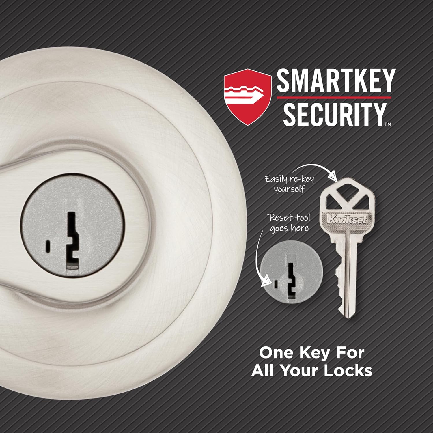 SMARTKEY SECURITY: Kwikset’s SmartKey Security technology protects against advanced break-in techniques and allows you to re-key your lock yourself in seconds