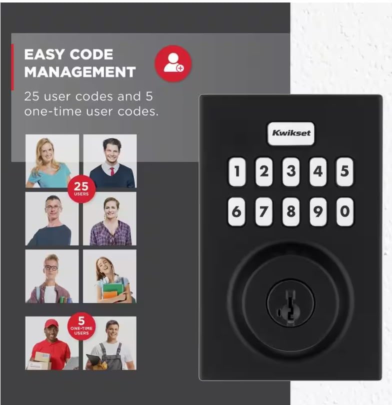 EASY CODE MANAGEMENT: Customize up to 25 user codes, 5 one-time user codes and 1 programming code that lets you edit or delete user codes whenever you need to