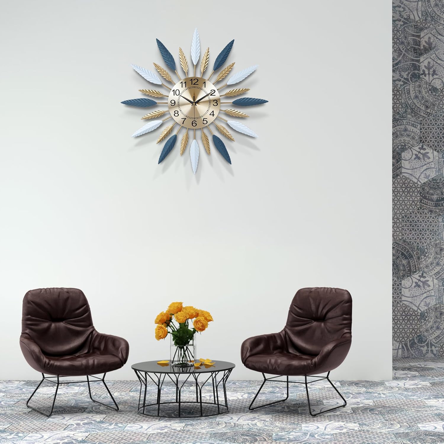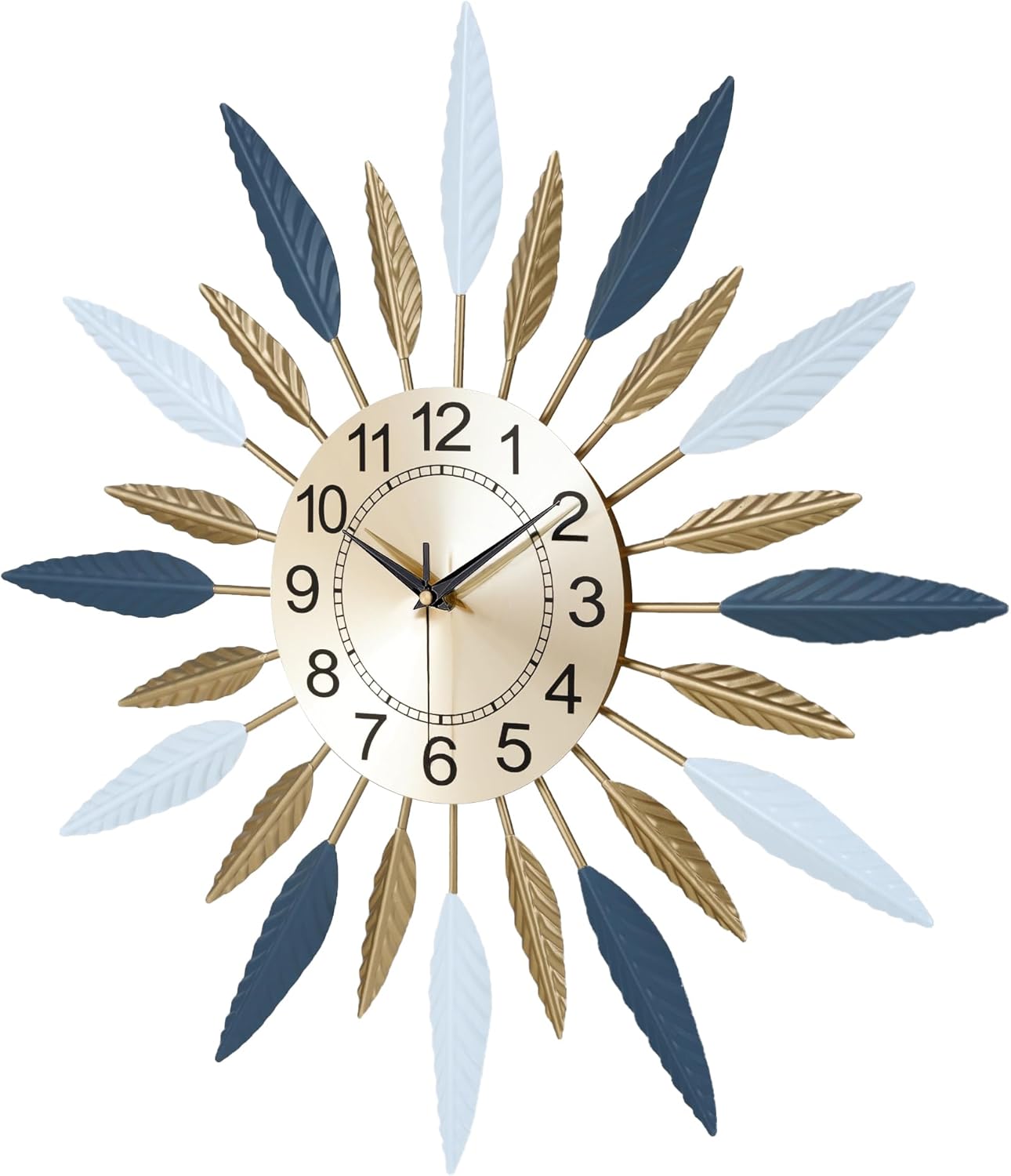 Mid Century Modern Style: It’s not only a timepiece, but also a great elegant art works. This clock features a sunburst/starburst design. Leaf-shaped branches sprout from the edge of the gleaming gold metal clock face, showing the style and making life more shining. Very stylish and unique, easily to attract other’s attention.