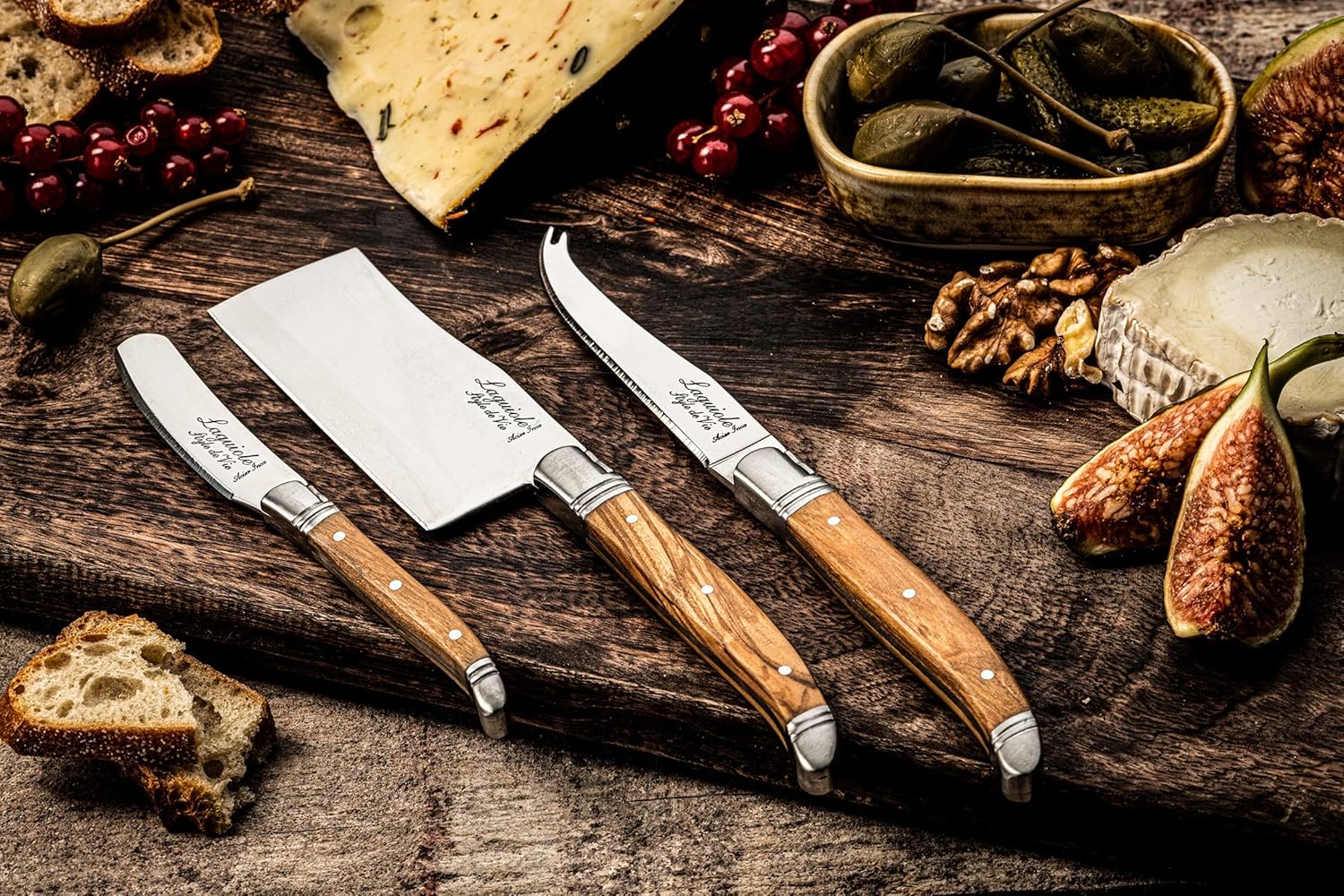 Complete Set: This cheese knife set from Laguiole Style de Vie contains 3 different cheese knives suitable for hard and soft cheeses.