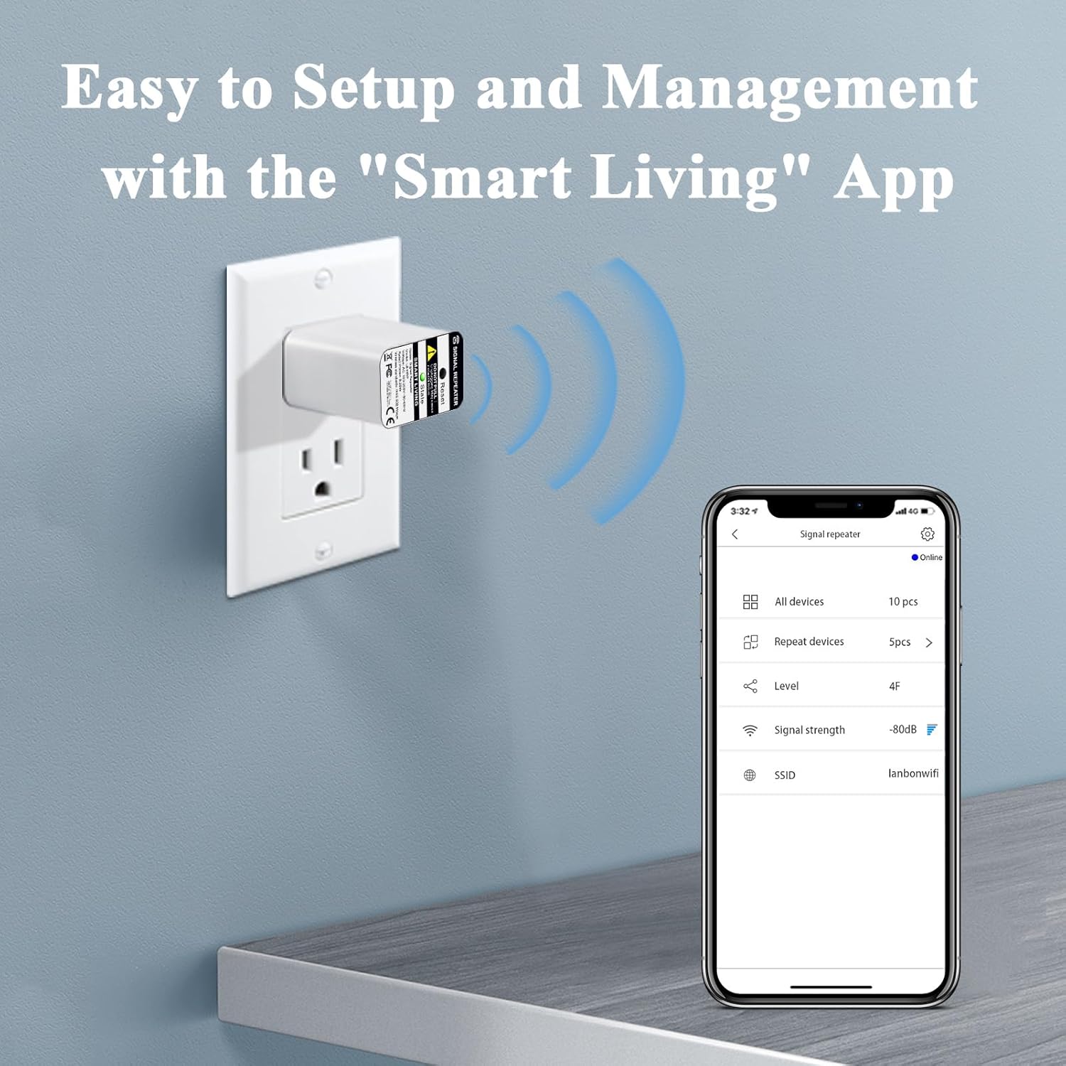 LANBON L8-HRP Mesh WiFi Extender Only for ‘Smart Living’ L8 Series Smart Switch, 2.4Ghz WiFi Repeater 10m Signal Booster No Lag & No Drop, Internet Booster WiFi Repeater