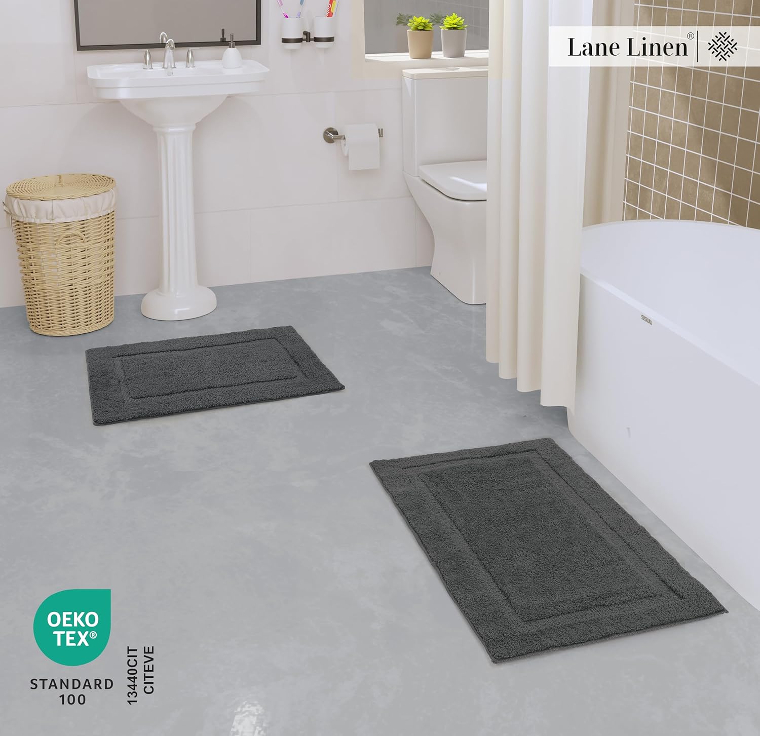 PREMIUM BATHROOM MAT : Lane Linen Grey Bathroom Rug Set includes 20″ x 32″ & 17″ x 24″ bath rugs. it can be used in bathroom, kitchen, bedroom, living room, door entrances, stairs, balcony, laundry room, pet house, pet rug, and more.