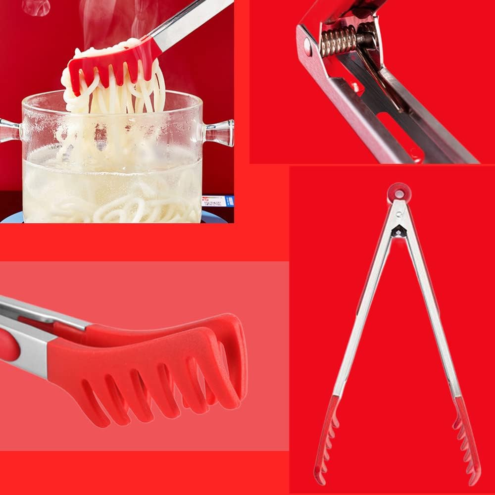 Large 16″ Red Stainless Steel Pasta Tong with Silicone Tips, 16 inch Spaghetti Tongs Pasta Server Utensil for Noodles Cooking Baking Food BBQ Kitchen Tools